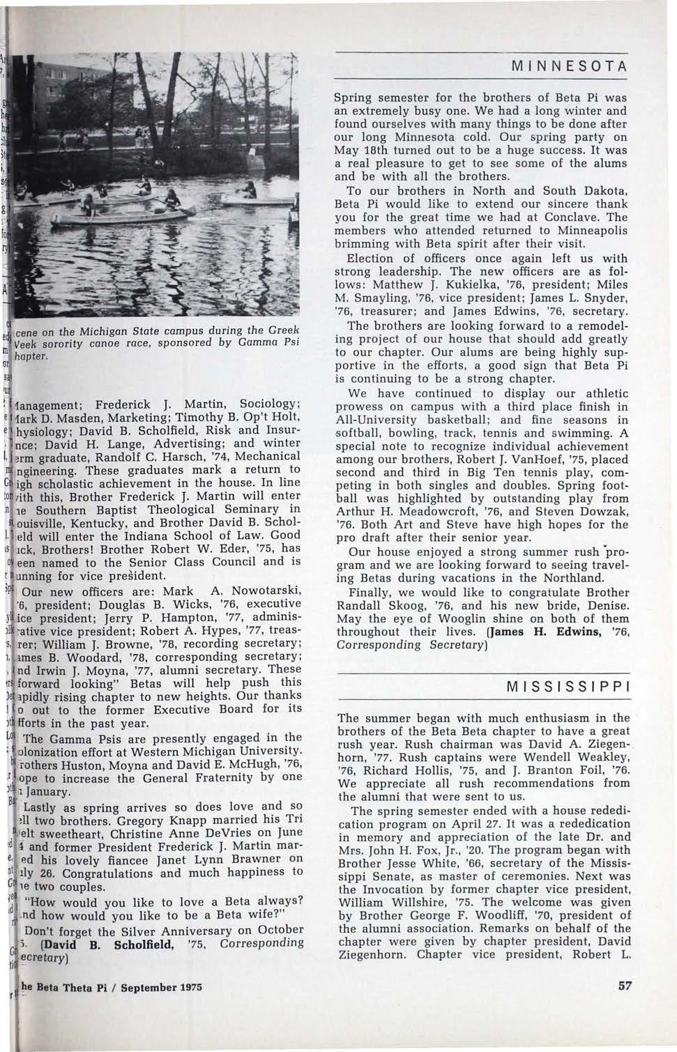 Since graduation, Brother Kolb has served the fraternity as chapter counselor at Wittenberg and attended <me Beta Leadership Workshop m 1974 and the 1974 General Convention.