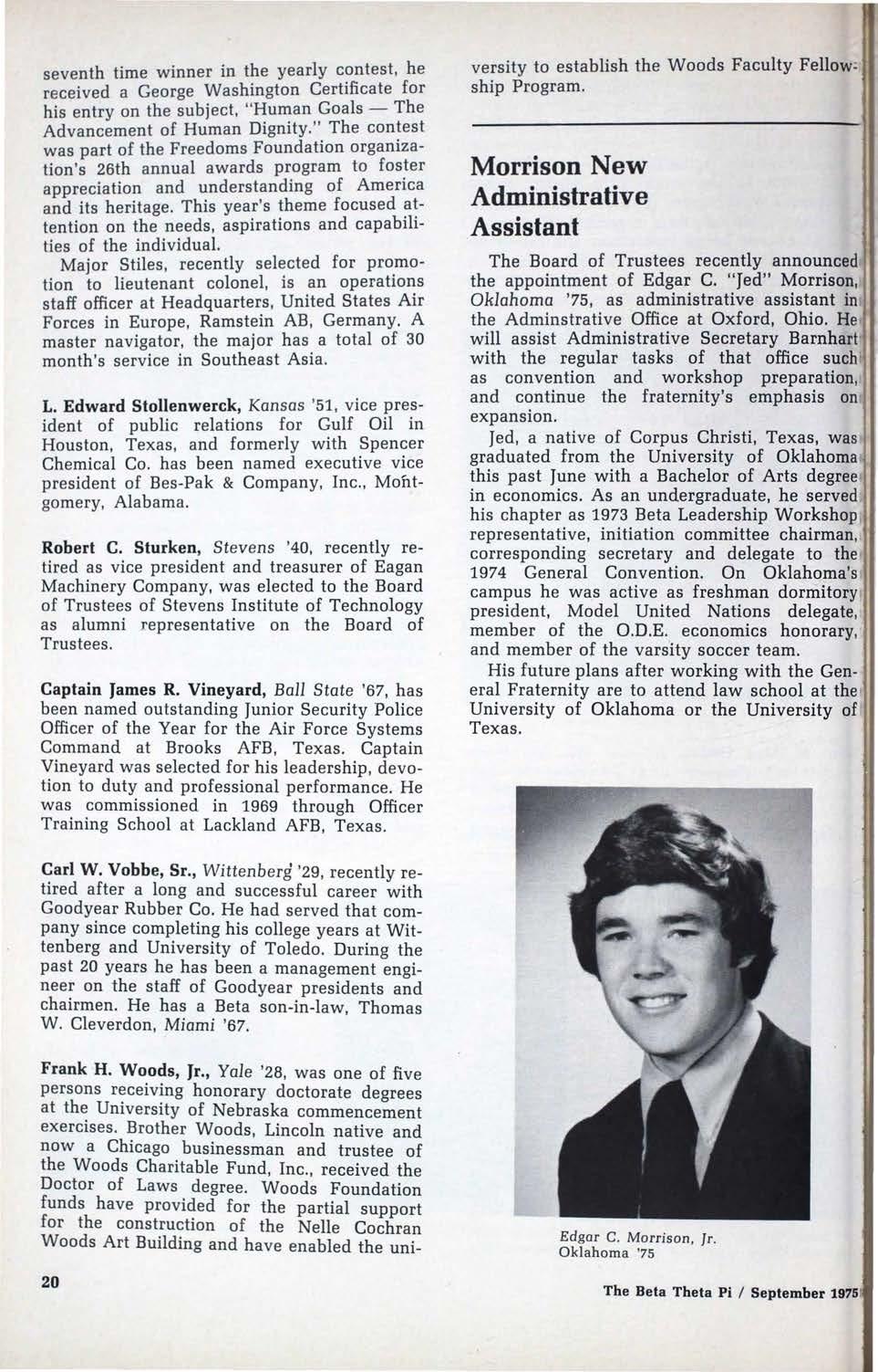 At Wittenberg, he -served the Alpha Gamma chapter as steward. He also was a member of Pi Sigma Alpha political science honorary.