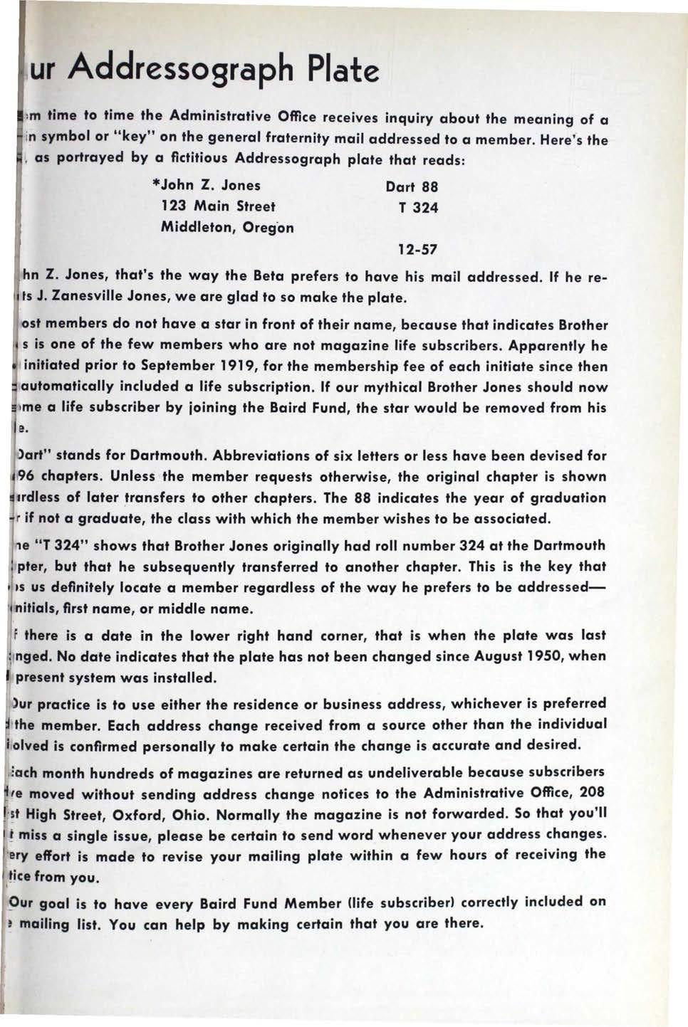 1m time to time the Administrative Office receives inquiry about the meaning of a in symbol or "key" on the general fraternity mail addressed to a member. Here ' s the , as portrayed by a fictitious Addressograph plate that reads: