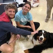Chris and MaKenzie Yoder receive pet therapy with service dogs at De-Stress Fest during finals week.