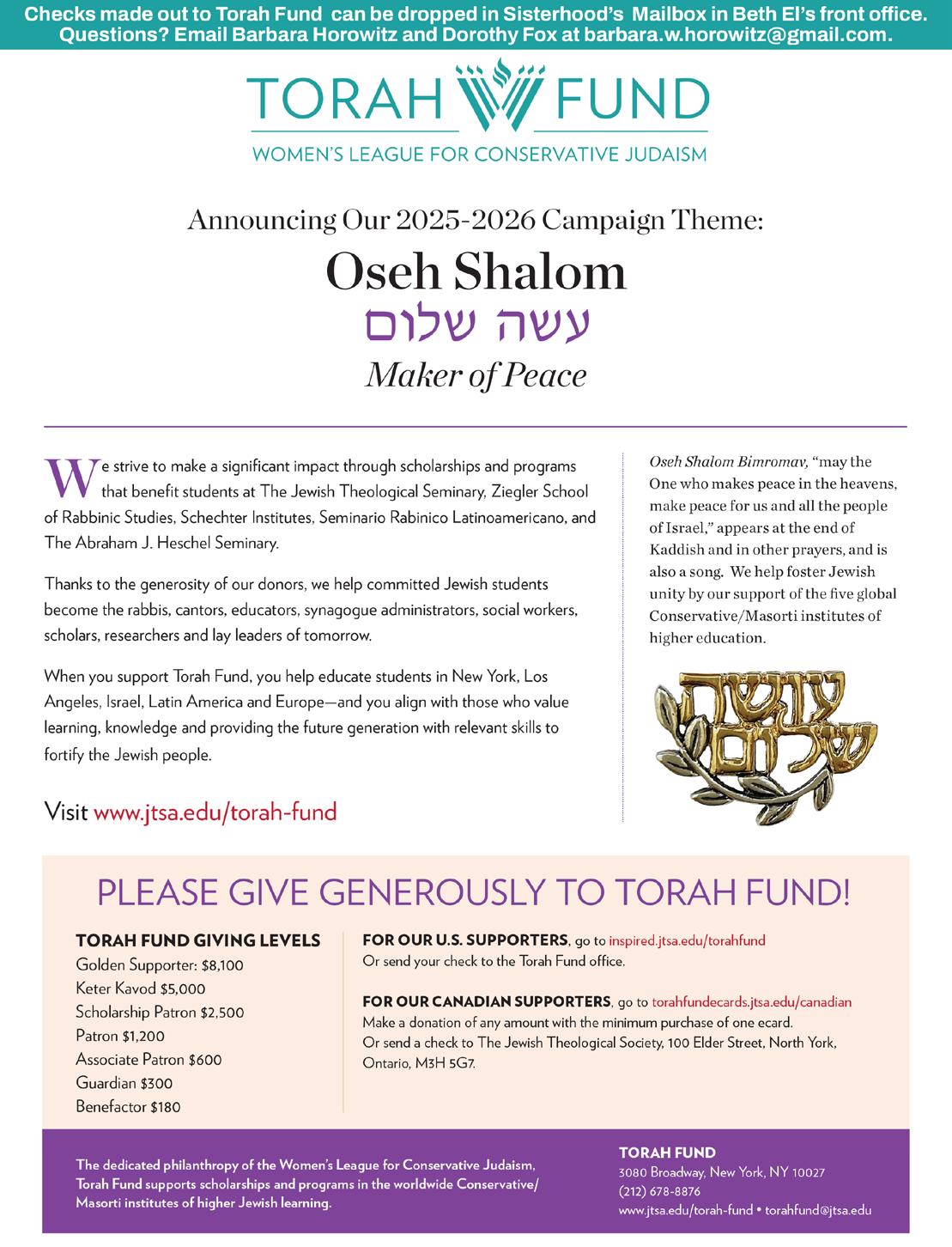 To see all upcoming services and events, visit bethelnr.org/upcoming To sign up to read Torah or Haftorah, visit bethelnr.org/readhaftorah (914) 235-2700
