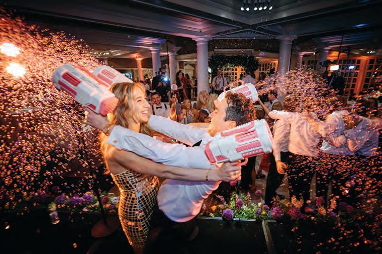 hits like “Espresso” by Sabrina Carpenter and “Pink Pony Club” by Chappell Roan. “I wanted to feel like you’re at a house party,” Michael says. The good times didn’t end when the reception did at midnight, instead rolling straight into the afterparty, also in the Colonnade room, with the band giving way to a pre-mixed DJ set. Finally, at 1 a.m., “the venue came ... and was like, ‘You guys have to leave,’ ” Michael says.