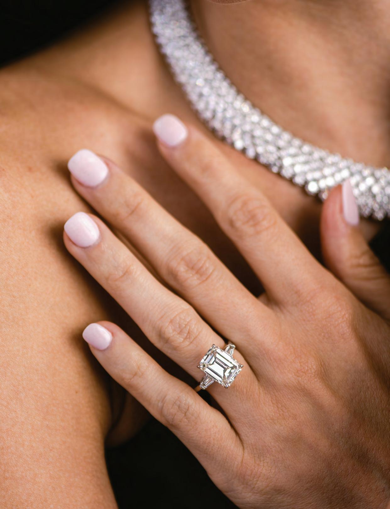 The outfits: While Michael went to Ralph Lauren to get a made-to-measure tuxedo for the black-tie affair, shopping for the big day didn’t come as naturally to Claire. “It’s a lot of trying on and making a decision about things,” she says. But when she went to New York City’s Kleinfeld Bridal—of Say Yes to the Dress fame—and tried on a lacedrenched Pnina Tornai gown, “it was an easy decision,” she says. The real showstopper arrived later in the evening, when Claire slipped into a Retrofête minidress. “I had said to Michael, ‘I want to look like a disco ball,’ ” Claire says, “and when we were in New York, I stopped by the store, and Michael was like, ‘That’s the dress.’ ”