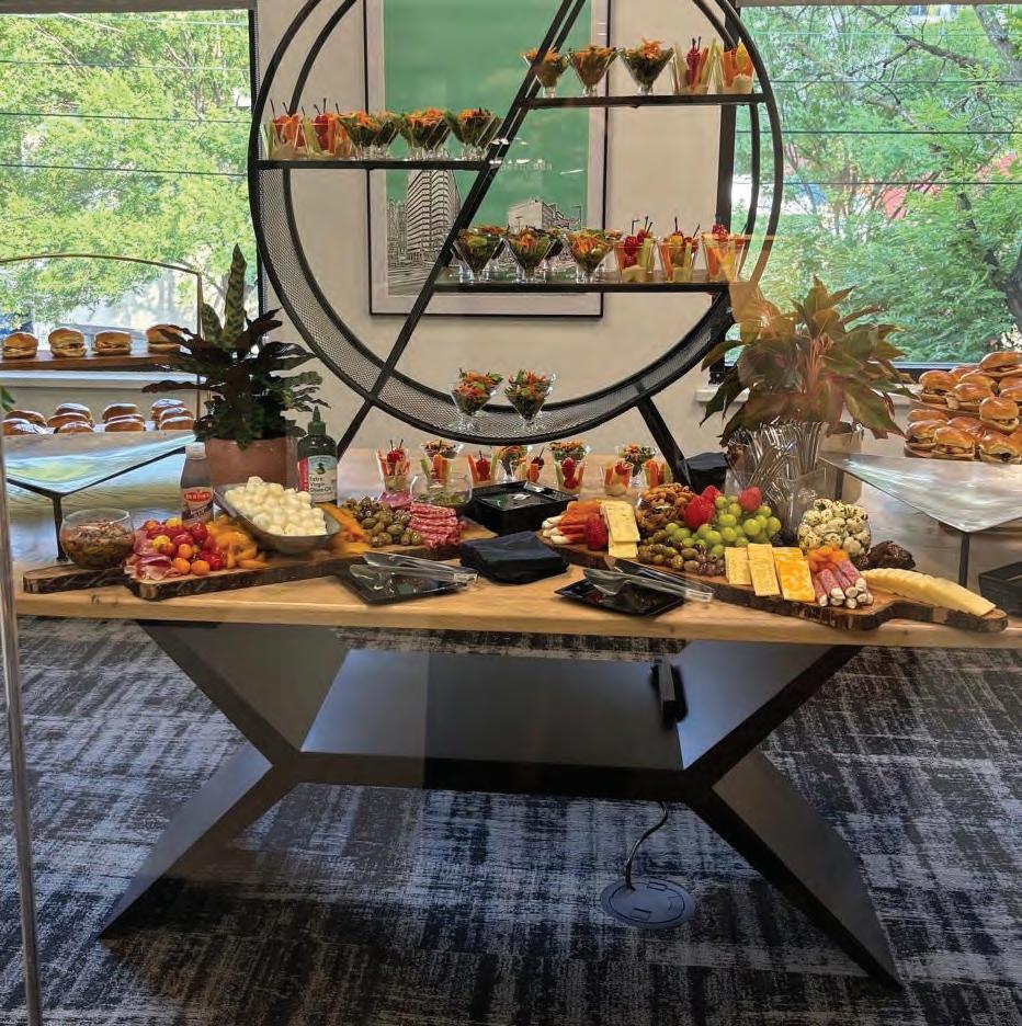 The food: The Fairmont provided hors d’oeuvres such as California rolls, Peking barbecue duck rolls and mini grilled cheeses with tomato soup shots, leading into a dinner of butternut squash and apple cider bisque and seared Chilean sea bass. “We still get compliments on the quality of the food,” Michael says. For dessert, guests