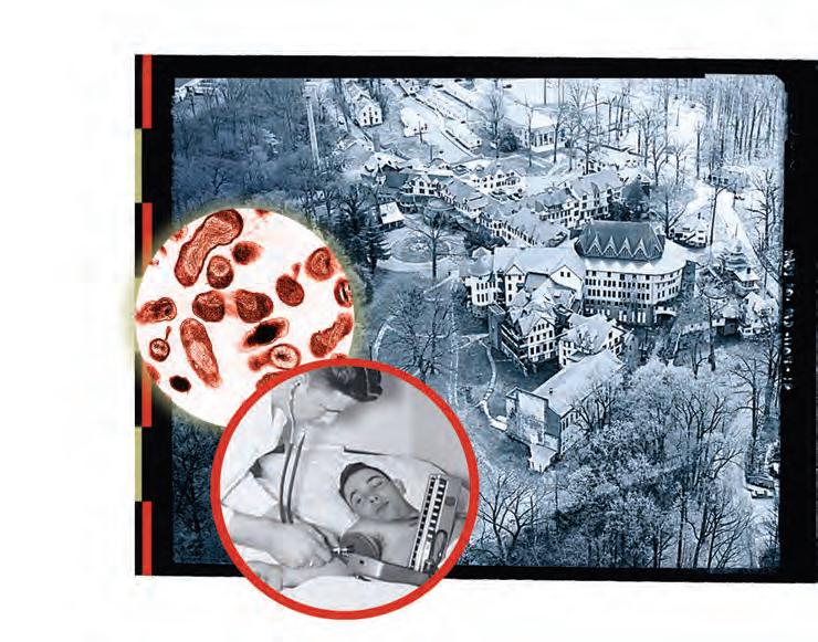 area were selected to participate in the experiments: a main facility at Camp Detrick in Frederick; the Walter Reed hospital in D.C.; and what was known as the Annex at Forest Glen, a rambling installation in the woods north of Silver Spring that was a women’s college before being taken over by the government in 1942 under the War Powers Act. The property, which included dormitories and classrooms, was first used by the government as a convalescence and rehabilitation facility for soldiers. After the end of the Korean War, and as the Cold War began to escalate, the site became involved in germ warfare experiments.