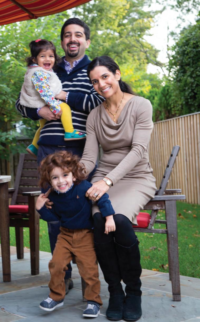 Kiran Ghia and r ahul r aj K umar moved to Montgomery county in 2012 from Brookline, Massachusetts, and in august 2014, bought a home in Bethesda’s Wyngate neighborhood. they have two children: son, Zaki, 3, and daughter, Rumi, 21 months.