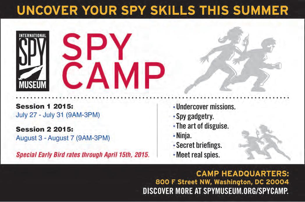 Spy Camp is filled with top secret briefings & activities that put spy skills to the test. Recruits will hone their tradecraft, learn from real spies, and run training missions.