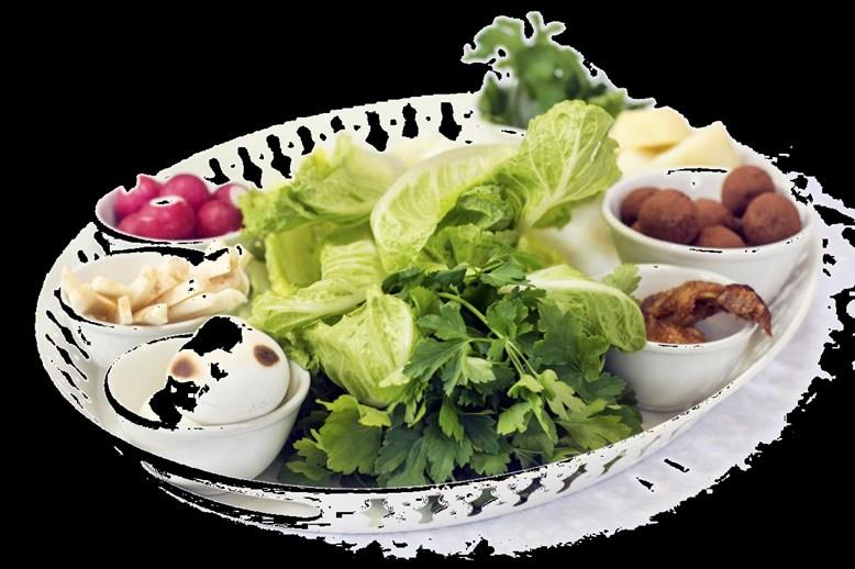 473,1-3. Pripremljen je tanjur u kojem se nalaze tri macesa (vidi 475,7); maror (gorko bilje); haroses (voćni umak za maror); povrće; slana voda ili ocat (umak za povrće); meso i jaje; trebaju biti složeni po redoslijedu