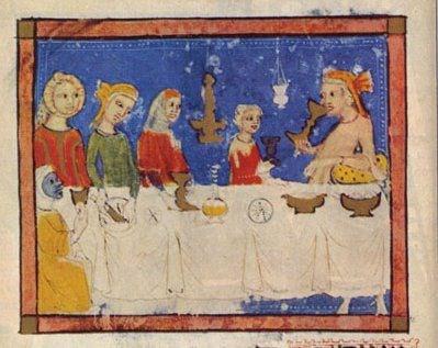 Srednji se maces trga na pola, jedan se dio stavlja na stranu da ga se pojede na kraju obroka, i kaže se "Ovo je kruh ..." (473,6). Natoči se druga