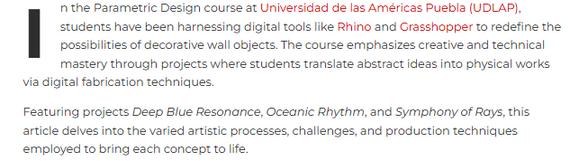 I'm currently in my eighth semester of Architecture at the University of the Americas Puebla I'm an innovative and creative person I thrive on challenges, work hard to achieve my goals, and define my life plan as multidisciplinary