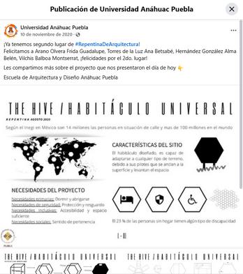 Segundo lugar en la 5a Repentina de Arquitectura en Proyectos reales con enfoque social, Anáhuac Puebla 2020