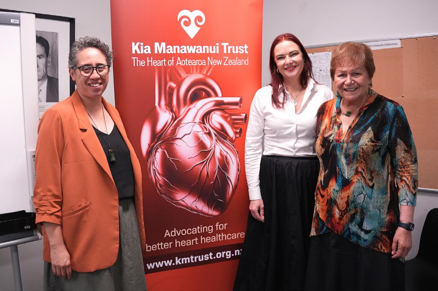 RIGHT: (From left) Trust Community Educator Manager Sharon Pihema, Trust CEO Letitia Harding, and Dame Rangimārie Naida Glavish.