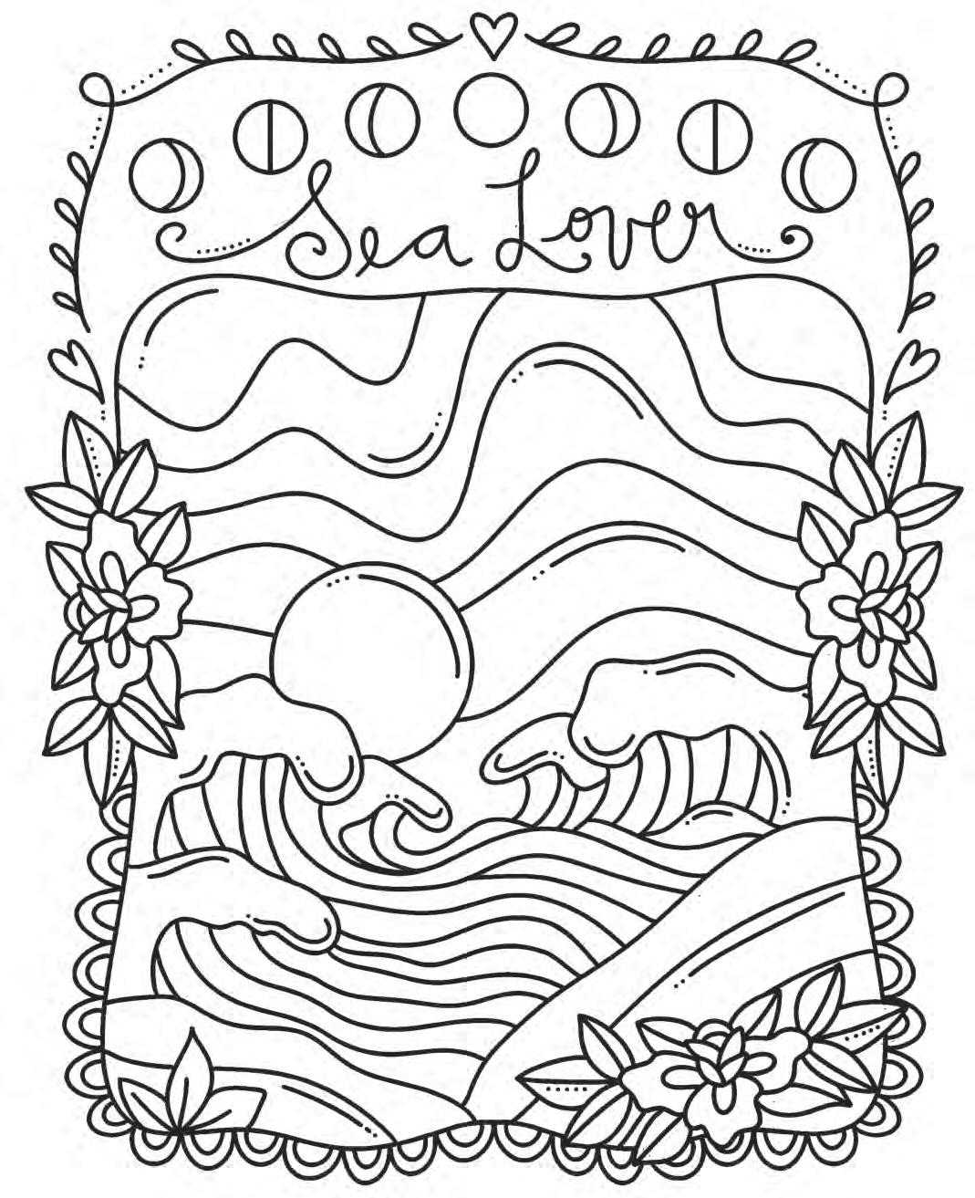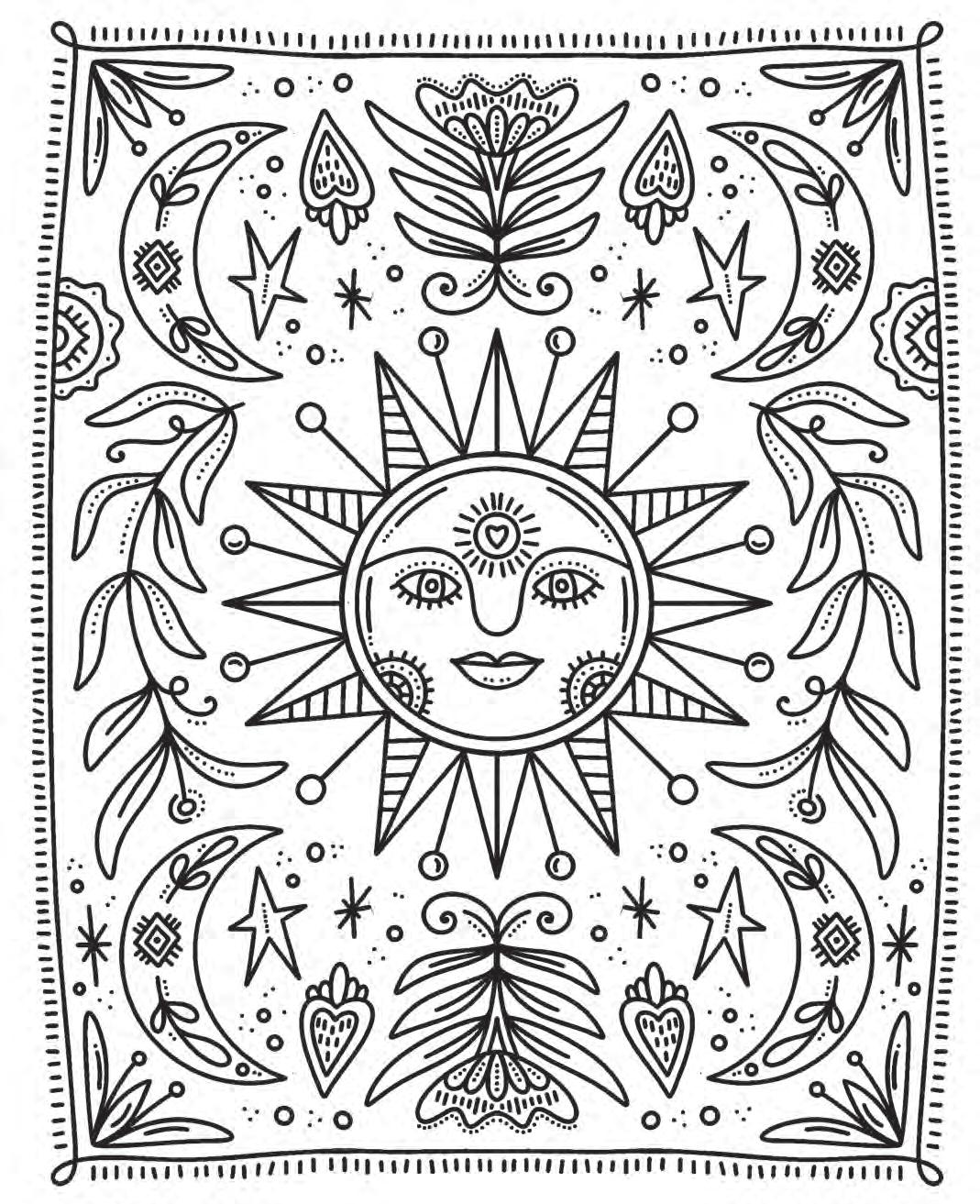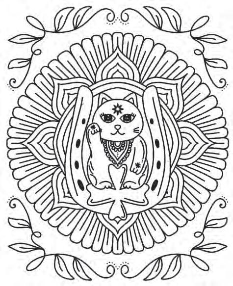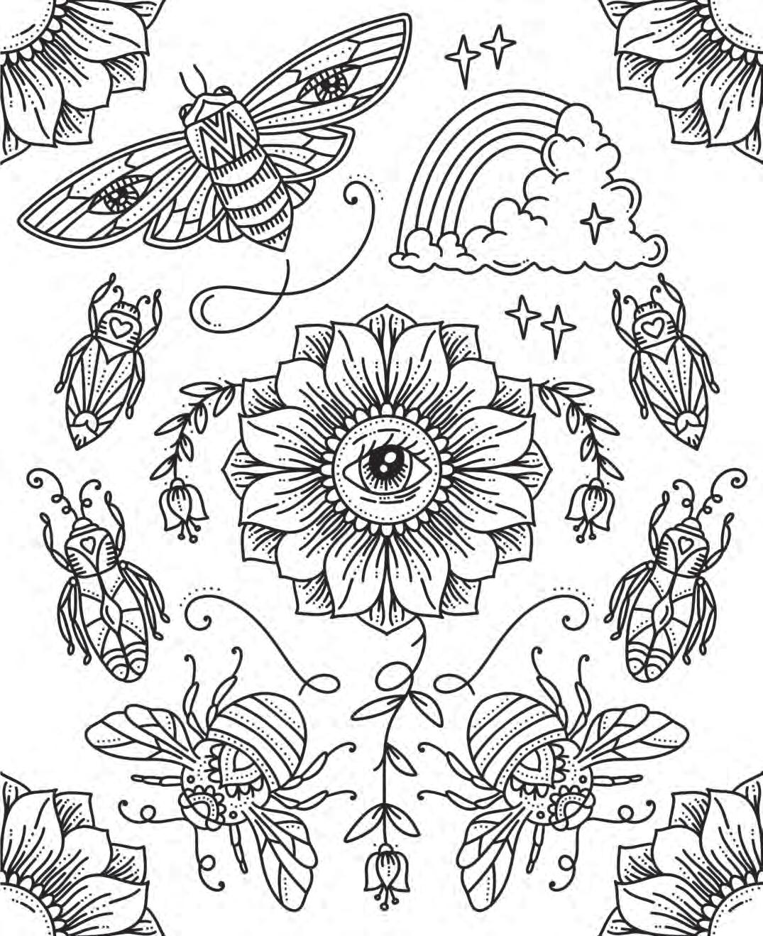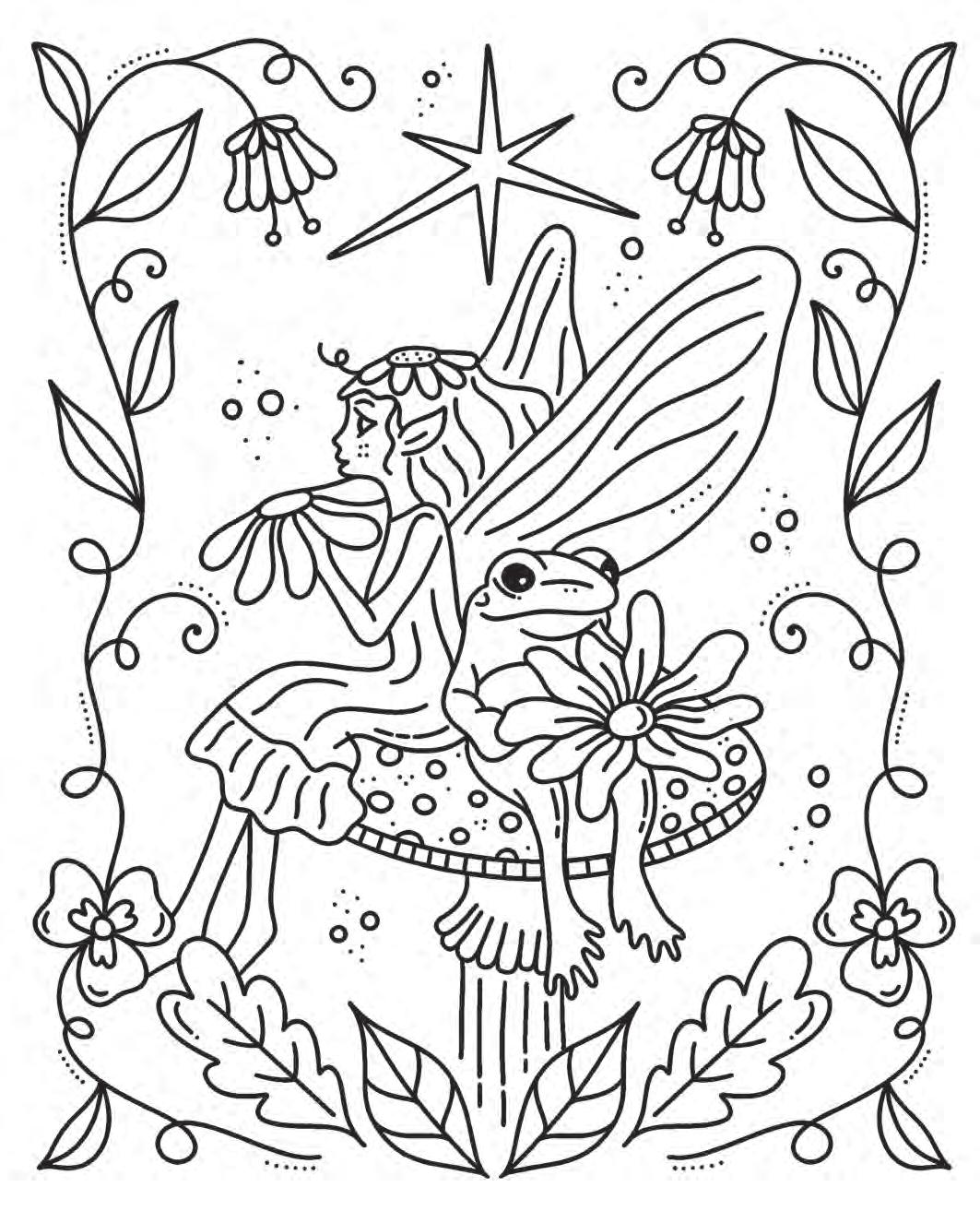 I hope you’re ready to revel in magic and start putting pencil (or marker) to paper! Feel free to dive into the following pages in any order you’d like. If you feel overwhelmed by the choices, hesitant to put your first color down, or simply creatively blocked, don’t worry—try using the Coloring Worksheet on the back of the coloring page you choose! This page will allow you to experiment with colors and establish a color palette before you commit to putting colors down on your chosen illustration. Each coloring page is also perforated if you’d like to remove it and color on a different surface or in another position.