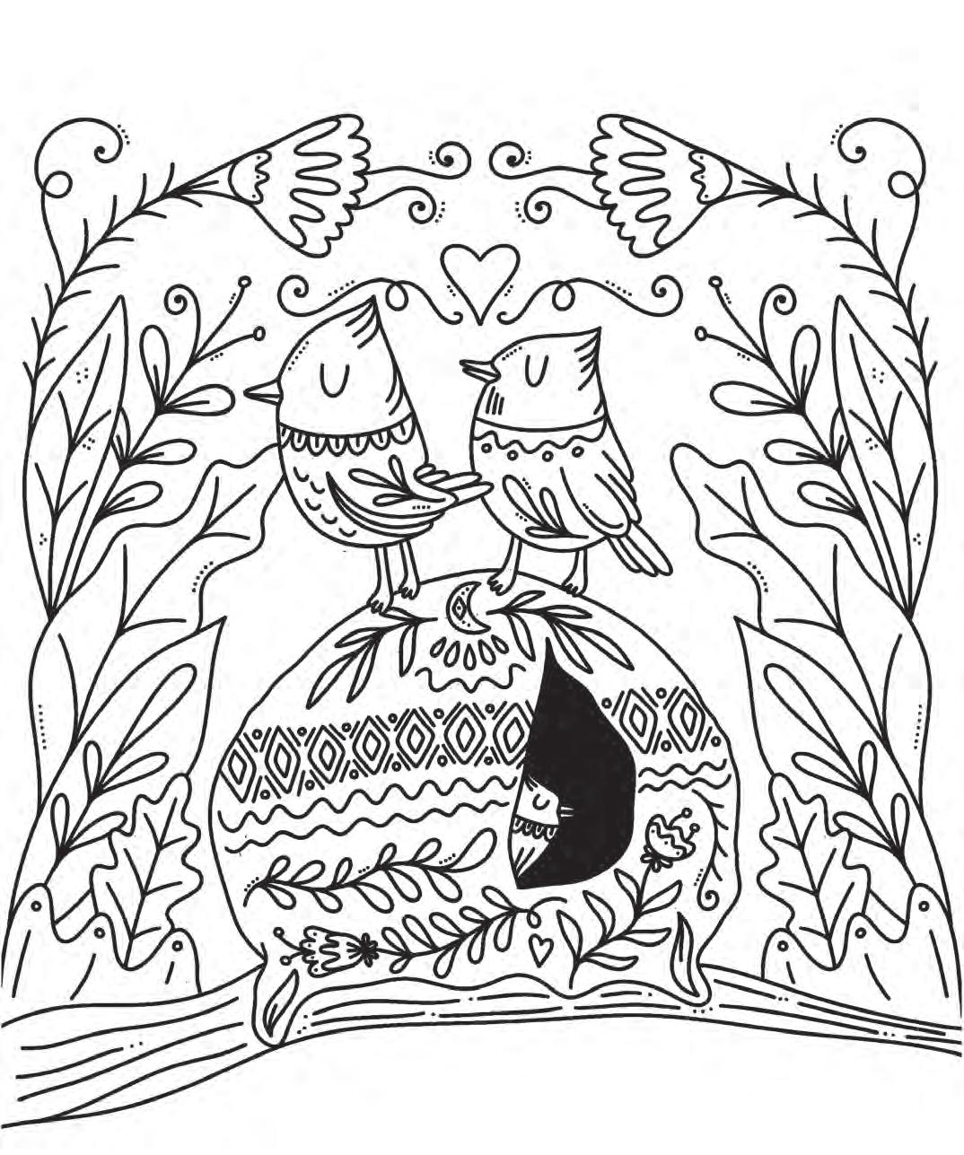 While you color this picture, think of the last time you heard birds chirping from outside your window. Can you see any now, or soon?