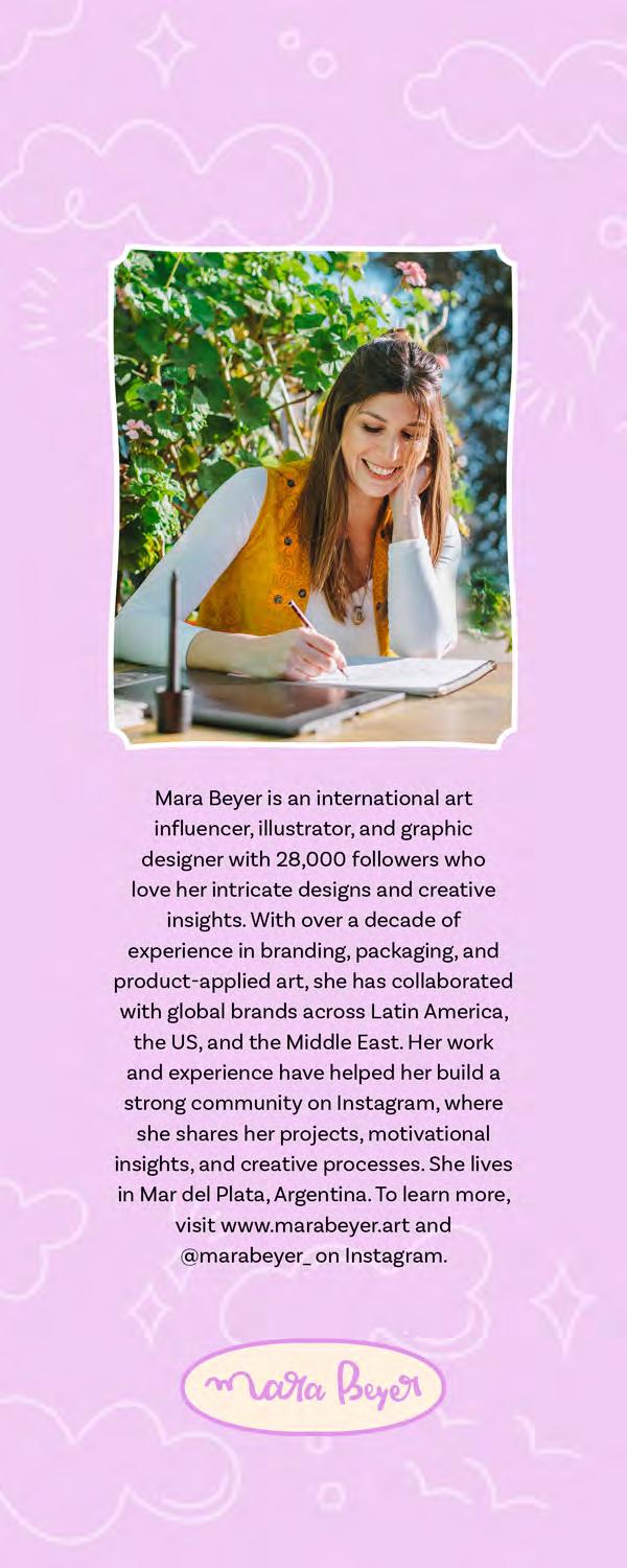 Mara Beyer is an international art influencer, illustrator, and graphic designer with 28,000 followers who love her intricate designs and creative insights. With over a decade of experience in branding, packaging, and product-applied art, she has collaborated with global brands across Latin America, the US, and the Middle East. Her work and experience have helped her build a strong community on Instagram, where she shares her projects, motivational insights, and creative processes. She lives in Mar del Plata, Argentina. To learn more, visit www. marabeyer.art and @marabeyer_ on Instagram.