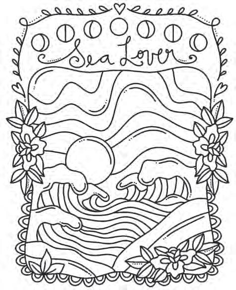 While you color this picture, reminisce on sweet memories of the beach and ocean.