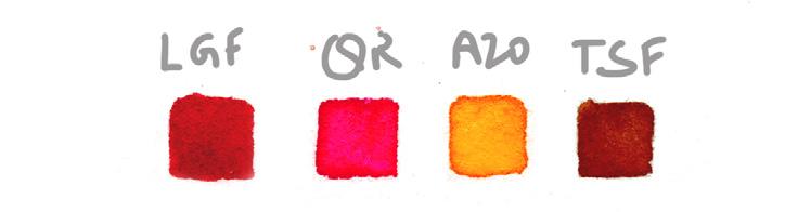 Déposez un premier jus jaune, faites une fusion avec une pointe de vermillon, puis avec du rouge alizarine.