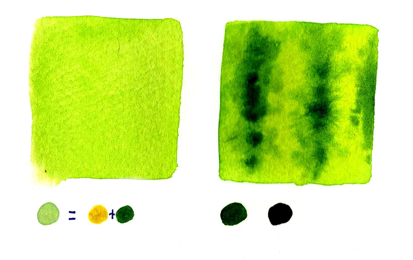 Pas besoin d’utiliser le marron pour les tiges : le rouge et le vert vont fusionner dans l’humide.