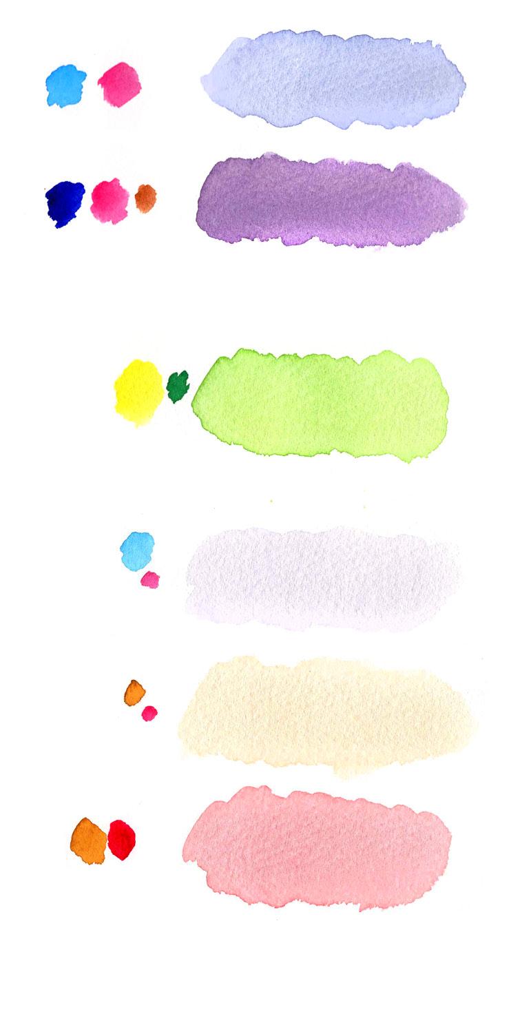 J’utilise principalement 15 couleurs, des godets Van Gogh. Au début, travailler avec peu de couleurs permet de vous familiariser avec les mélanges. Avec le temps, et si peindre à l’aquarelle vous plaît, vous pourrez investir dans de belles couleurs toutes faites.
