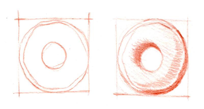 Reprenez vos compas d’écoliers pour obtenir de jolies formes rondes pour vos donuts ou cookies. C’est ensuite avec l’aquarelle que vous jouerez sur les irrégularités.