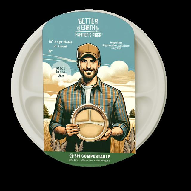 10” 3-Cpt Farmer’s Fiber Round Plate | 20 ct