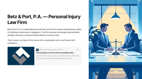 Betz & Port is a Bloomington, MN law firm dedicated to helping individuals understand their rights after serious injuries or accidents. With decades of combined experience, the team offers clear guidance and personal attention throughout the legal process. They focus on professionalism, integrity, and client communication to help people make informed legal decisions.