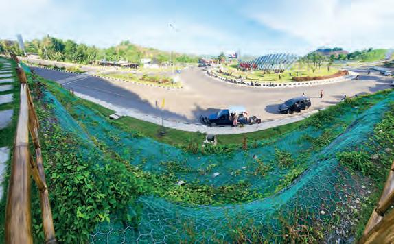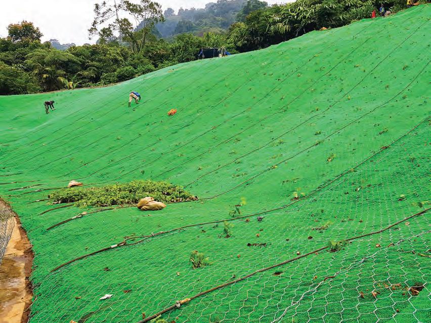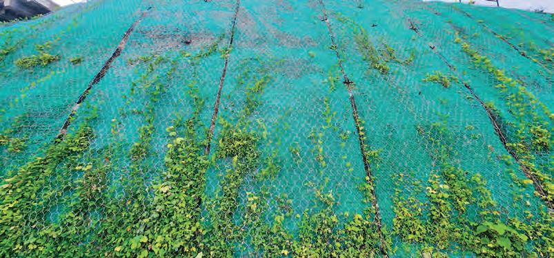 Geomat is a material made from high-density polyethylene (HDPE) with a three-dimensional structure used for erosion protection and slope protection. with BEVA Greenett® double-twisted hexagonal steel wire mesh sheets and can be planted with plants using hydroseeding or tamping methods, thus forming natural vegetation and strengthening the soil structure. This material supports long-term reinforcement and has erosion resistance that can withstand water scouring on the soil surface.