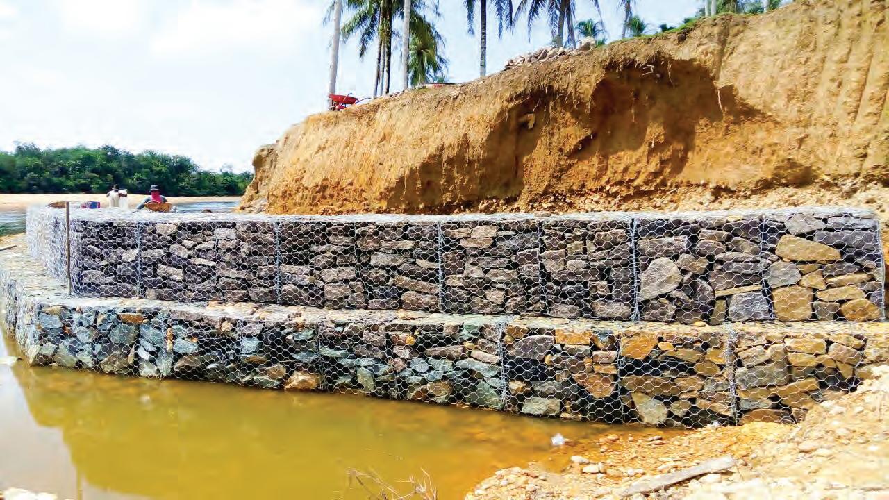 • Enhances slope stability as it acts as a massive gravity wall and has high tensile strength due to its wire mesh construction;