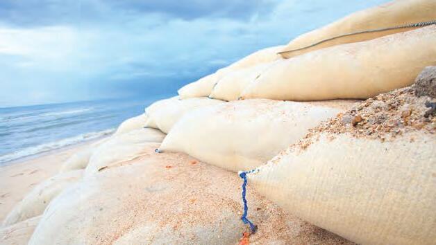 Geobags are non-woven geosynthetics made from polyester (PET) or polypropylene (PP) that are sewn and filled with sand/soil to form a cushion that serves to protect against abrasion, stabilize slope edges and dams, and even reinforce riverbanks or reservoir walls. These geobags have excellent resistance to abrasion and chemicals, allowing them to withstand various soil and marine conditions, as well as UV rays, making them environmentally friendly.