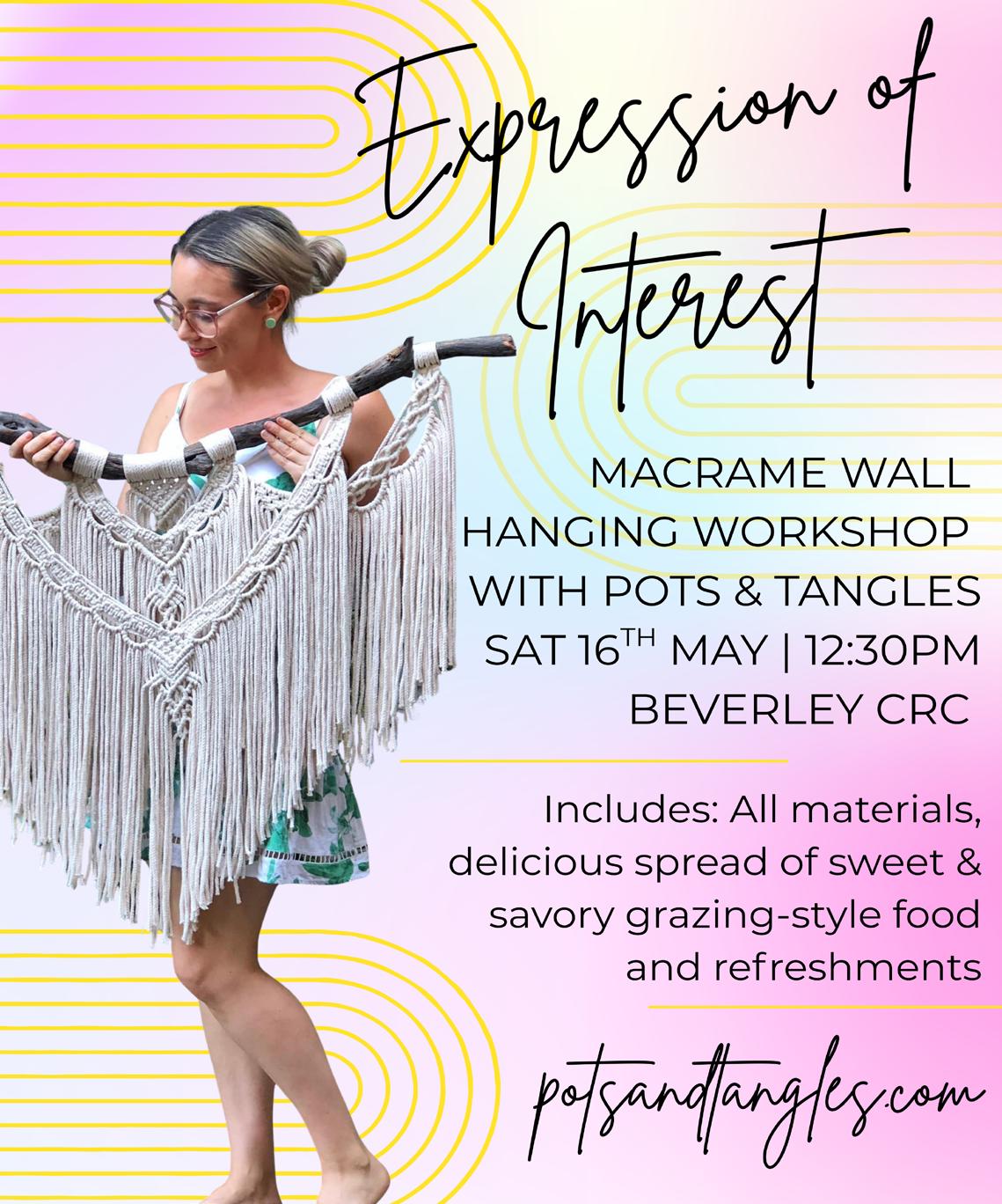 Where: Beverley CRC What: Macrame Wall Hanging Cost: $125 per person