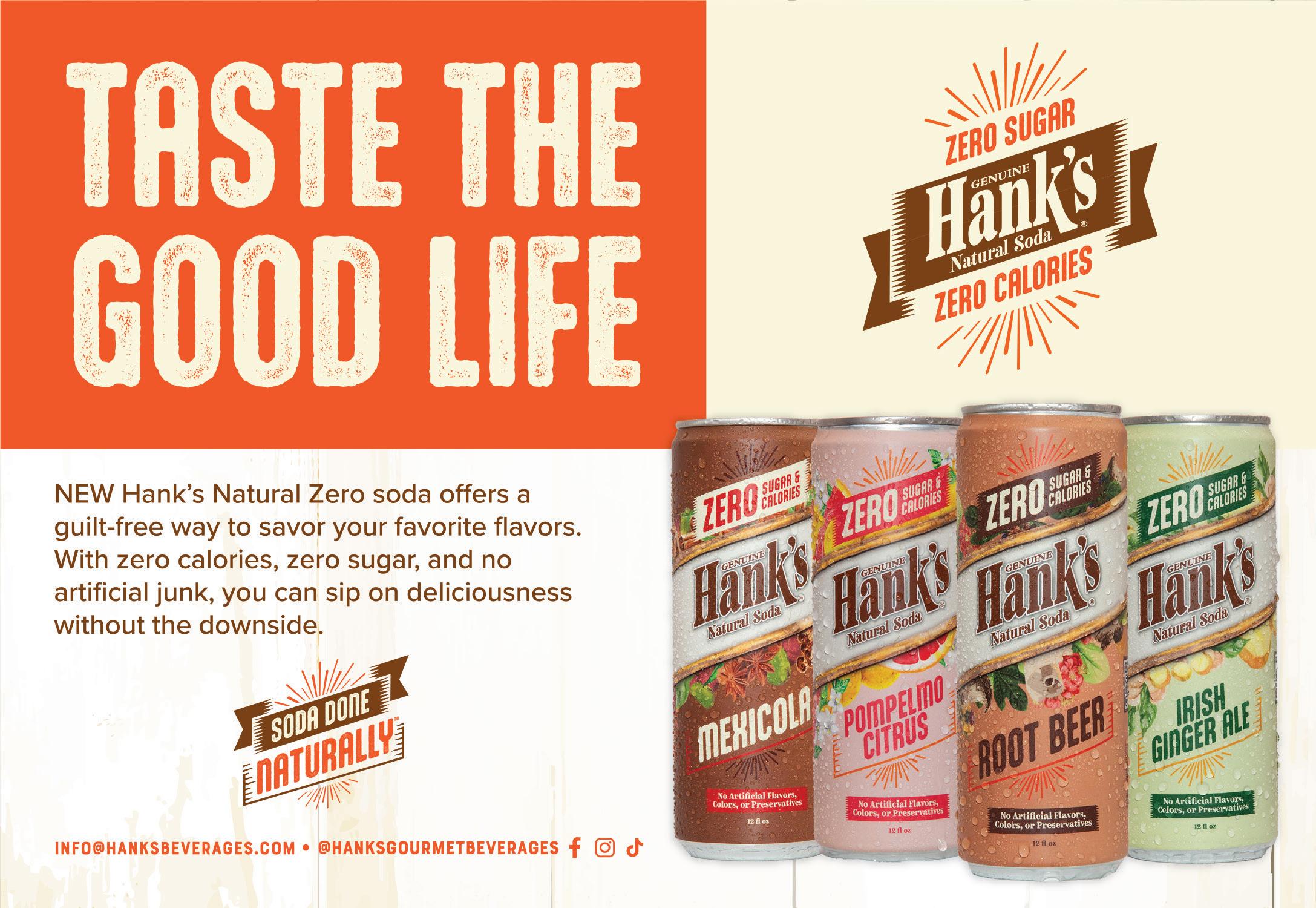 Hank's All-Natural Zero Soda offers a guilt free way to savor your favorite flavors: Root Beer, Pompelmo Citrus, Irish Ginger Ale & Mexicola. With zero calories, zero sugar, and no artificial junk, you can sip on deliciousness without the downside