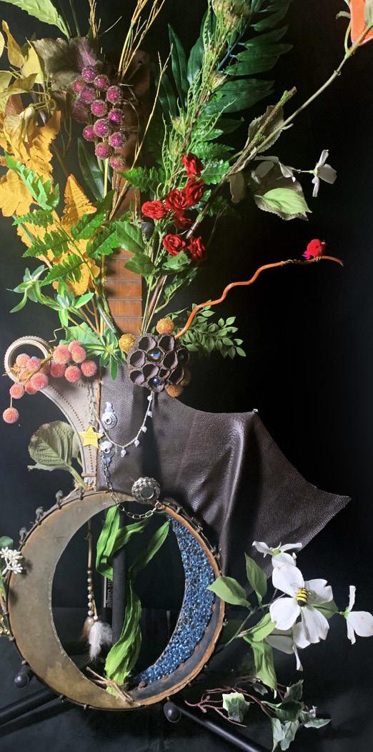 Nat King Cole Generation Hope’s “Project Encore! Arts & Culture Upcycling” offered another unique opportunity for students to merge art and introspection. The organization provided recycled guitars and art supplies to 3D design students to create unique assemblage sculptures inspired by their personal experiences with music. One work, titled “Rebirth,” is a former banjo bursting back to life as a garden. The sculpture’s artists describe the work as: “Beautiful flowers, plants and fruits blossom from every direction and living amongst them, insects and birds play a part in the melody…Harmonies that take you back in time… Just like the cycle of life, music grows and is reborn.”