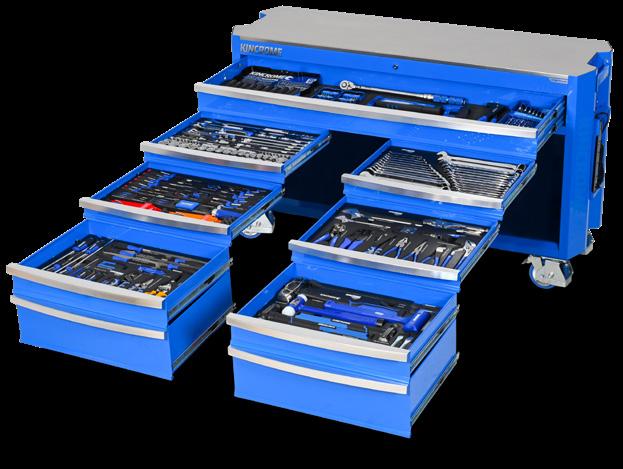 12 LIFETIME GUARANTEE 172 Piece 7 Drawer 26” Chest Tool Kit > 92 Piece Sockets & Accessories EVA Tray > 4 Piece Pliers EVA Tray > 30 Piece Combination Spanners EVA Tray > 13 Piece Torquemaster® Screwdriver Set > 9 Piece Metric Hex Key Set > 9 Piece Imperial Hex Key Set > Hacksaw, Hammer, Pliers, Wrench & more... > Measurements: L 660 x W 455 x H 488mm K1219 DEEP EXTRA LIFETIME GUARANTEE LIFETIME GUARANTEE 3 TRAYS FOAM DRIVE $1999 280 Piece 7 Drawer 26” Chest Tool Kit > 92 Piece Sockets & Accessories EVA Tray > 4 Piece Pliers EVA Tray > 36 Piece Hex & TORX® Fastening EVA Tray > 30 Piece Combination Spanners EVA Tray > 75 Piece TorqueMaster® Screwdrivers EVA Tray > 19 Piece Cut, Hook & Scrape EVA Tray > 19 Piece Striking & Prying EVA Tray & more... > Measurements: L 660 x W 455 x H 488mm K1218 $2749 185 Piece 11 Drawer 26” Workshop Tool Kit > 68 Piece Sockets & Accessories EVA Tray > 26 Piece Combination Spanners EVA Tray > 16 Piece TorqueMaster® Screwdrivers EVA Tray > 8 Piece Pliers & Wrenches EVA Tray > 25 Piece Hex Key Set > Tape, Hammer, File Set, Knife & more... > Measurements: L 675 x W 466 x H 1171mm K1225 $2549 367 Piece, 18 Drawer 41” Workshop Tool Kit > 144 Piece Sockets & Accessories EVA Tray > 30 Piece Combination Spanners EVA Tray > 30 Piece Single Way Gear Spanners EVA Tray > 10 Piece 10 Piece Pliers, Wrenches & Riveter EVA Tray > 75 Piece TorqueMaster® Screwdrivers & Fastening EVA Tray > 19 Piece Cut, Hook & Scrape EVA Tray > 19 Piece Striking & Prying EVA Tray & more... > Measurements: L 1042 x W 455 x H 1451mm K1229 $5999 AVAILABLE PAYMENT PLAN AVAILABLE PAYMENT PLAN AVAILABLE PAYMENT PLAN AVAILABLE PAYMENT PLAN AVAILABLE PAYMENT PLAN 3 Drawer 26” Add-On Chest > Heavy Duty Steel Construction > Heavy Duty 35mm full extension Ball Bearing slides with a 20kg load capacity > Automatically closes the drawer over the last 30mm to prevent accidental opening > Lockable Drawers with Kincrome universal key which can be inserted in any orientation > EVA Foam Drawer Liners to protect both drawers & tools > Ultra Violet Stabilised industrial powder coating prevents fading > Recessed carry handles for comfort & ease of movement when transporting > Measurements: L 660 x W 310 x H 280mm K7953 $239 13 Drawer 53” Tool Trolley > Heavy Duty Steel Construction > Heavy Duty 35mm full extension Ball Bearing Slides with a 20kg load capacity > Automatically closes the drawer over the last 30mm to prevent accidental opening > Lockable Lid & Drawers with Kincrome universal key which can be inserted in any orientation > EVA Foam Drawer Liners to protect both drawers & tools > 4 x Heavy Duty swivel castors (2 x Lockable) for ease of movement > Ultra Violet Stabilised industrial powder coating prevents fading > Measurements: L 1347 x W 466 x H 963mm K7963 $1449 DEEP EXTRA LIFETIME GUARANTEE 7 FOAM DRIVE WIDE EXTRA 7 LIFETIME GUARANTEE DEEP EXTRA DRIVE SPANNERS GEAR DEEP SOCKETS DEEP EXTRA WIDE SUPER