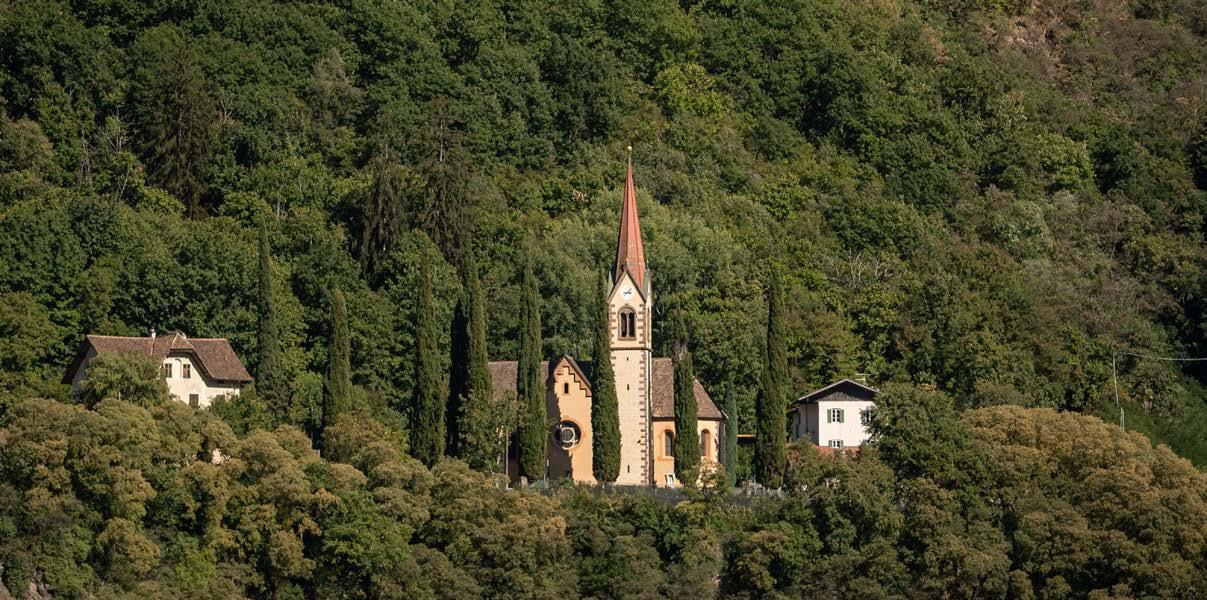 Von der Bushaltestelle Naturns wenden wir uns erst Richtung Vinschgau, dann die Straße aufwärts, an mehreren modernen Hotels vorbei, direkt zur Pfarrkirche. Die erst kürzlich renovierte Kirche aus dem 15. Jh. ist dem hl. Zeno geweiht und einen Besuch wert. Sie birgt unter anderem ein kostbares Marienbild von Jörg Lederer.