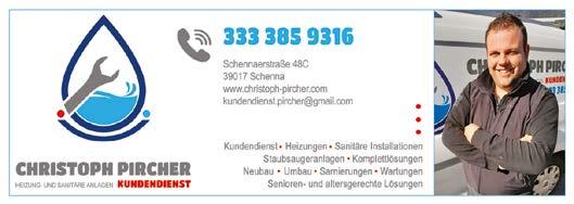 Redaktionsleitung: Josef Prantl, Tel. 340 2306888, josef.prantl@fastwebnet.it Mitarbeiter: Christl Fink, Philipp Genetti, Martin Geier, Walter J. Werth, Christian Zelger, Markus Auerbach, Elisabeth Tappeiner, Thomas Kobler Werbeverkauf: Claudia Kaufmann, Tel. 347 974 42 70 | claudia@diebaz.com Sonja Trogmann, Tel. 335 839 94 00 | sonja@diebaz.com Stephanie Gassebner, Tel. 348 811 06 40 | sg@diebaz.com Grafik und digitale Druckvorstufe: Markus Ladurner | grafik@diebaz.com Druck: Athesia Druck GmbH, Weinbergweg 7, 39100 Bozen Gender Hinweis: Aus Gründen der besseren Lesbarkeit wird bei Personenbezeichnungen und personenbezogenen Hauptwörtern die männliche Form verwendet. Entsprechende Begriffe gelten im Sinne der Gleichbehandlung grundsätzlich für alle Geschlechter. Die verkürzte Sprachform hat nur redaktionelle Gründe und beinhaltet keine Wertung.