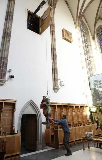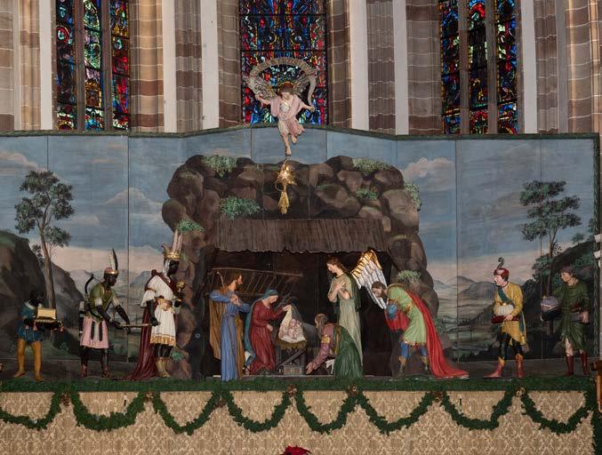 Laubbäume und Felsen im Vordergrund. Die kriegsbeschädigten Kulissen wurden von P. Konrad Walder OFM, dem Kunstmaler Rudolf Stolz und dessen Tochter Grete in den 50er Jahren meisterlich renoviert. Wenn die große Krippe in der Franziskanerkirche sorgsam verräumt wird (vgl. Bild), ist für die Bozner die Weihnachtszeit endgültig vorüber.