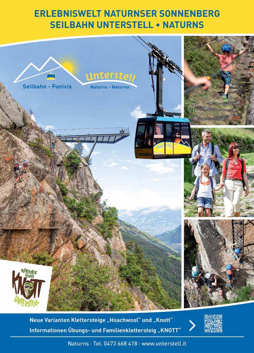 Anfahrt: Mit dem Linienbus oder mit dem Auto ins Schnalstal und nach Katharinaberg. Ausgangspunkt: Katharinaberg 1245 m Ziel: Waldhof 1505 m – Unterstell 1300 m Gehzeit: insgesamt rund 2 1/2 Std. Beste Zeit: Meist kann der Meraner Höhenweg zu jeder Jahreszeit begangen werden, im Winter ist auf eisige Stellen zu achten, bei großer Hitze ist er abzuraten.