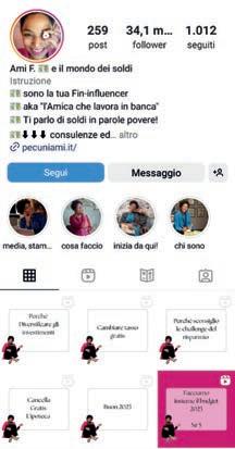 Con oltre 30mila follower,@pecuniami è uno dei profili finanziari più seguiti. Gestito dalla bancaria Ami F., parla di educazione finanziaria con un taglio dedicato prevalentemente al pubblico di sesso femminile.