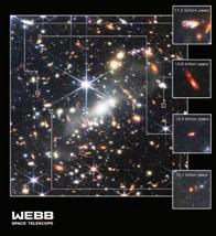 In questo numero di 128 pagine - come è tradizione nei mesi di agosto e settembre – Cesare Guaita continua, come in un romanzo a puntate, a seguire le gesta del James Webb Space Telescope. Dopo averci presentato, nei mesi scorsi, le scoperte e ettuate nel Sistema solare e tra gli esopianeti, ora ci proietta ai con ni dell’Universo, proprio là da dove era iniziata, un anno fa, la dimostrazione della potenza del Webb con quella foto dell’ammasso di galassie Smacs 0723 presentata in diretta dalla Casa Bianca dal presidente Biden e dall’amministratore delegato della Nasa Bill Nelson. Come si legge nell’articolo, sembra che spingendo lo sguardo n quasi alle porte del Big Bang, oltre che galassie relativamente piccole e poco produttive in termini di formazione stellare – come è lecito attendersi da galassie tanto giovani – il Webb stia scoprendo anche galassie più strutturate, solo di poco successive alle precedenti, non compatibili con la forma e la massa delle galassiette primordiali, nemmeno se la loro evoluzione fosse avvenuta in maniera iper-accelerata. Un bel grattacapo, la cui soluzione potrebbe chiamare in causa la “materia oscura”.