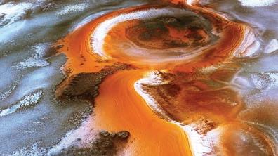 Completano la scena strati di nebbie, specialmente nella parte centrale dell’immagine. Durante l’inverno, ai poli di Marte si deposita ghiaccio di anidride carbonica, un fenomeno che interessa circa il 15 per cento dell’atmosfera marziana. Questo ghiaccio sublima in primavera, facendo aumentare la pressione atmosferica e generando forti venti. Così si crea un enorme scambio di materiale tra la super cie e l’atmosfera durante tutto l’anno marziano.