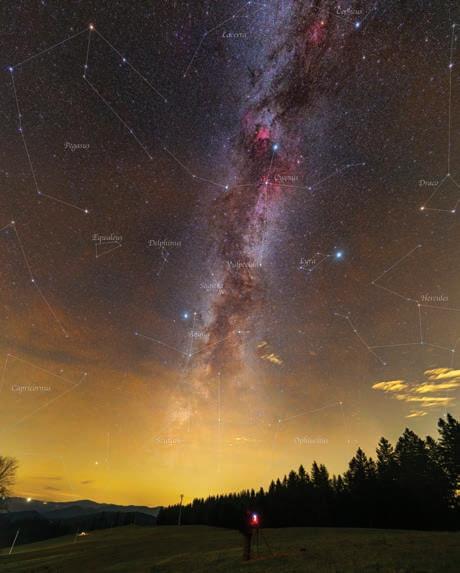 Olimpi scon ggono i Titani. Si narra che il dio Pan ne fosse il protagonista risolutivo: lanciando la carica con una sterminata mandria di asini e con il suo terribile urlo (che incuteva il “terrore di Pan” o “panico”), scompigliò le schiere dei Titani, favorendo la vittoria degli Olimpi. Giove portò in cielo due asinelli e diede loro una mangiatoia, in latino praesepe. Pan ebbe diversi amori omosessuali: il più noto è quello con Dafni, descritto spesso come un eromenos (un adolescente che aveva una relazione d’amore con un adulto). Anche per questo abbiamo una ricca documentazione di dipinti e sculture. E che dire di Ercole, alto nel cielo nelle notti estive? Nel mito si fa riferimento alle dodici fatiche, o al suo concepimento fraudolento operato da Giove ai danni di Alcmena e suo marito An trione. L’eroe ebbe diversi amori omosessuali: il più noto quello con Ila, che accompagnò Ercole anche nel viaggio degli Argonauti. E nel cielo estivo, non lontano da Ercole, abbiamo il Cigno, che nel mito è