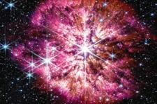 Il Mid-Infrared Instrument (Miri) del telescopio spaziale James Webb ha ripreso la stella WR 124 a 15mila anni luce di distanza nella costellazione del Sagittario; è una stella “di Wolf-Rayet”, quindi al termine della sua vita e in procinto di esplodere come supernova. Nell’immagine ripresa in luce infrarossa si presenta incorniciata da uno spettacolare alone di gas e polvere, risultato di una serie di esplosioni cicliche, che precedono il botto finale.