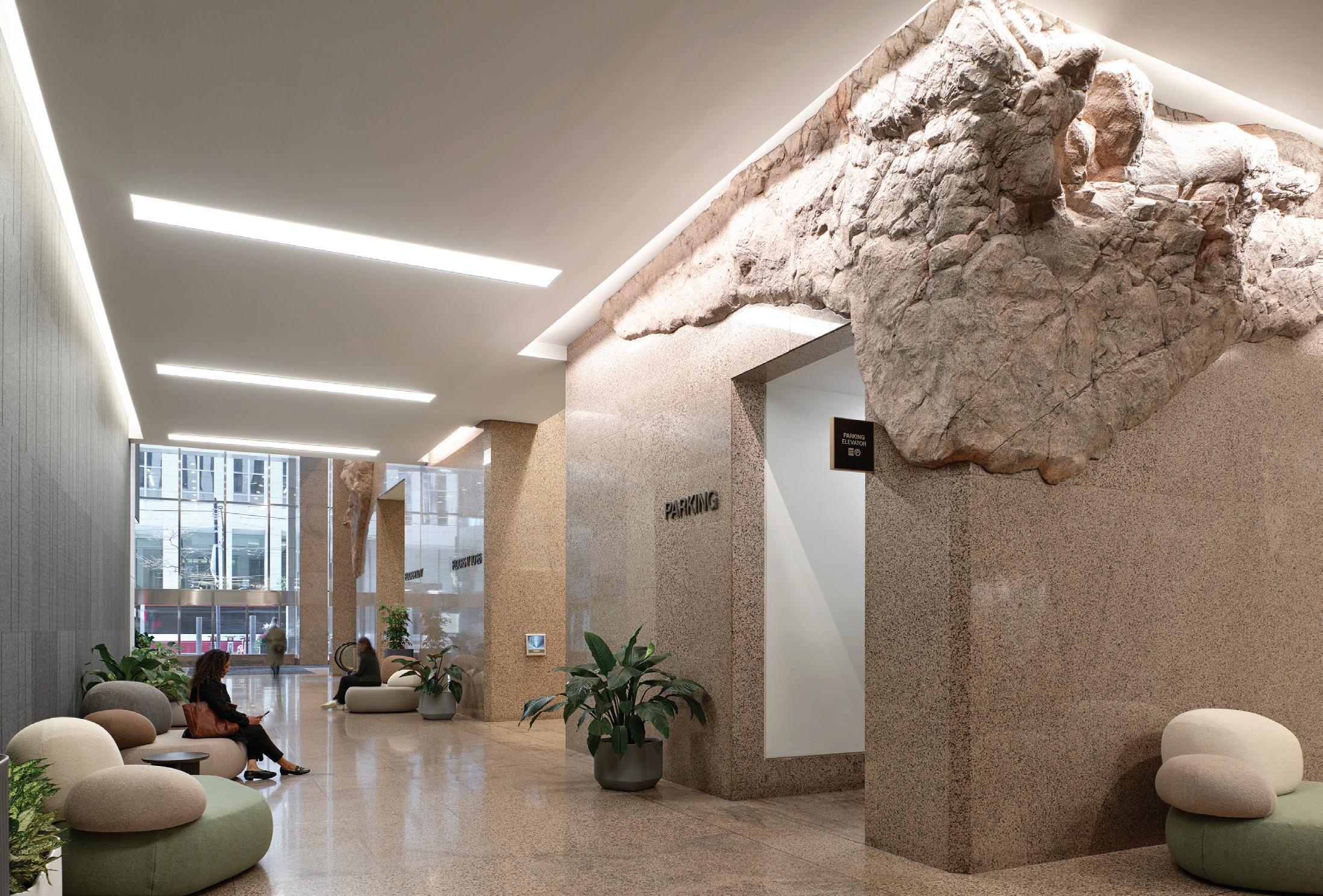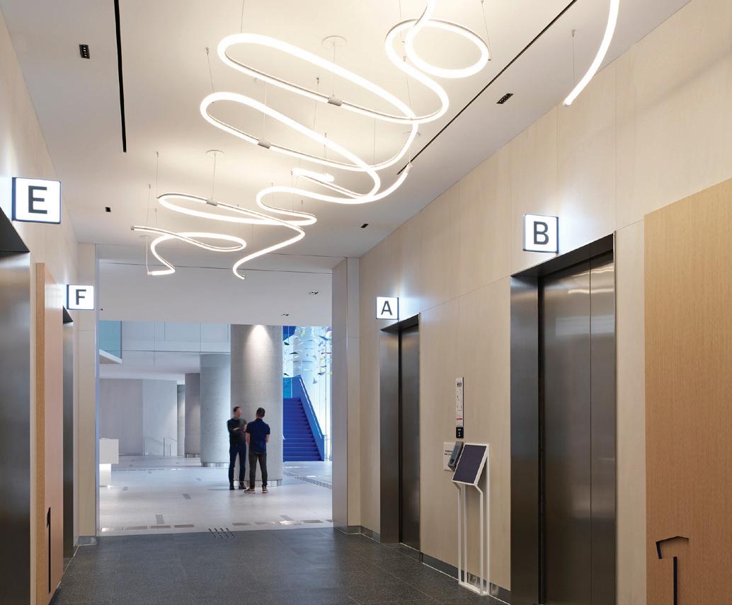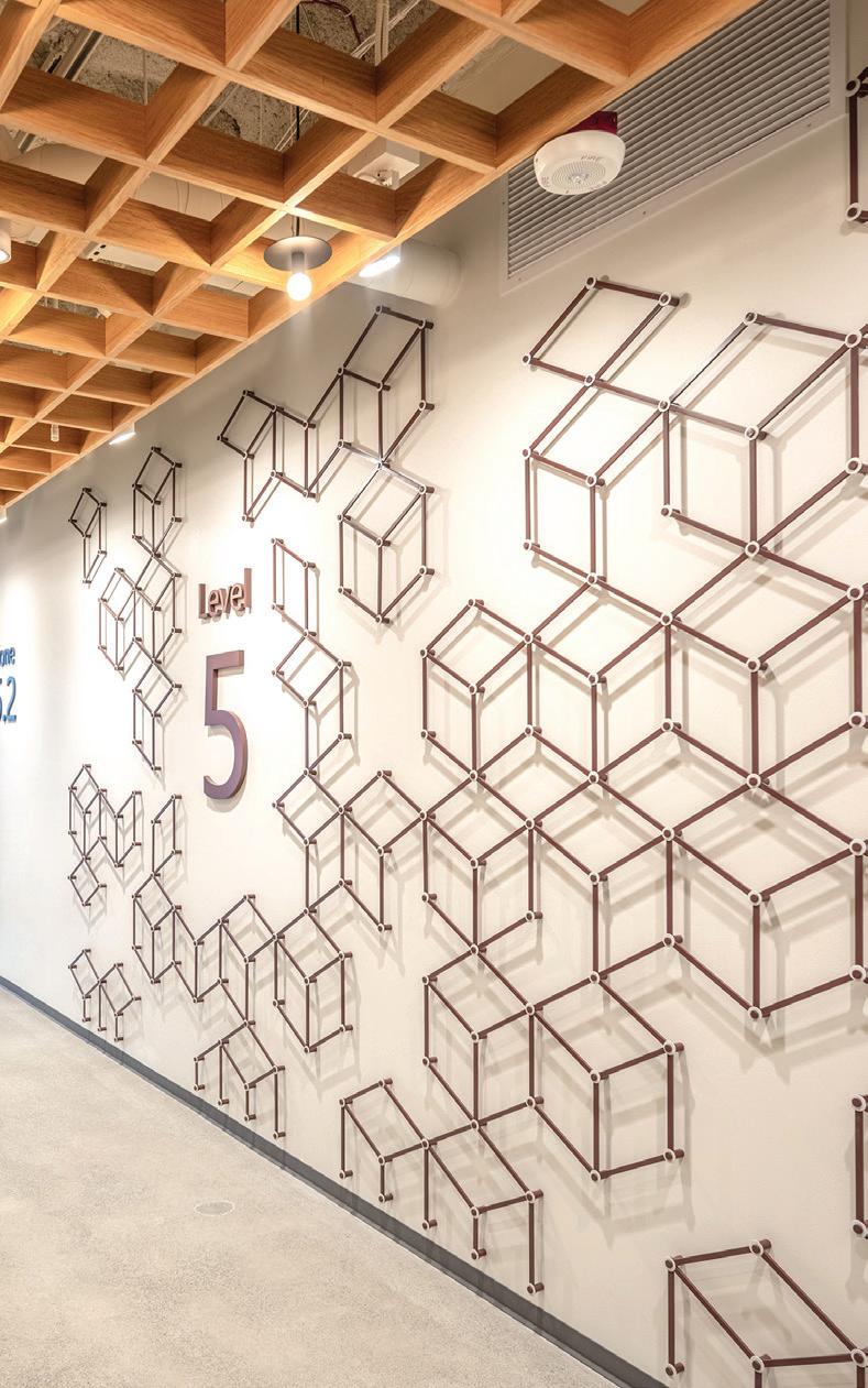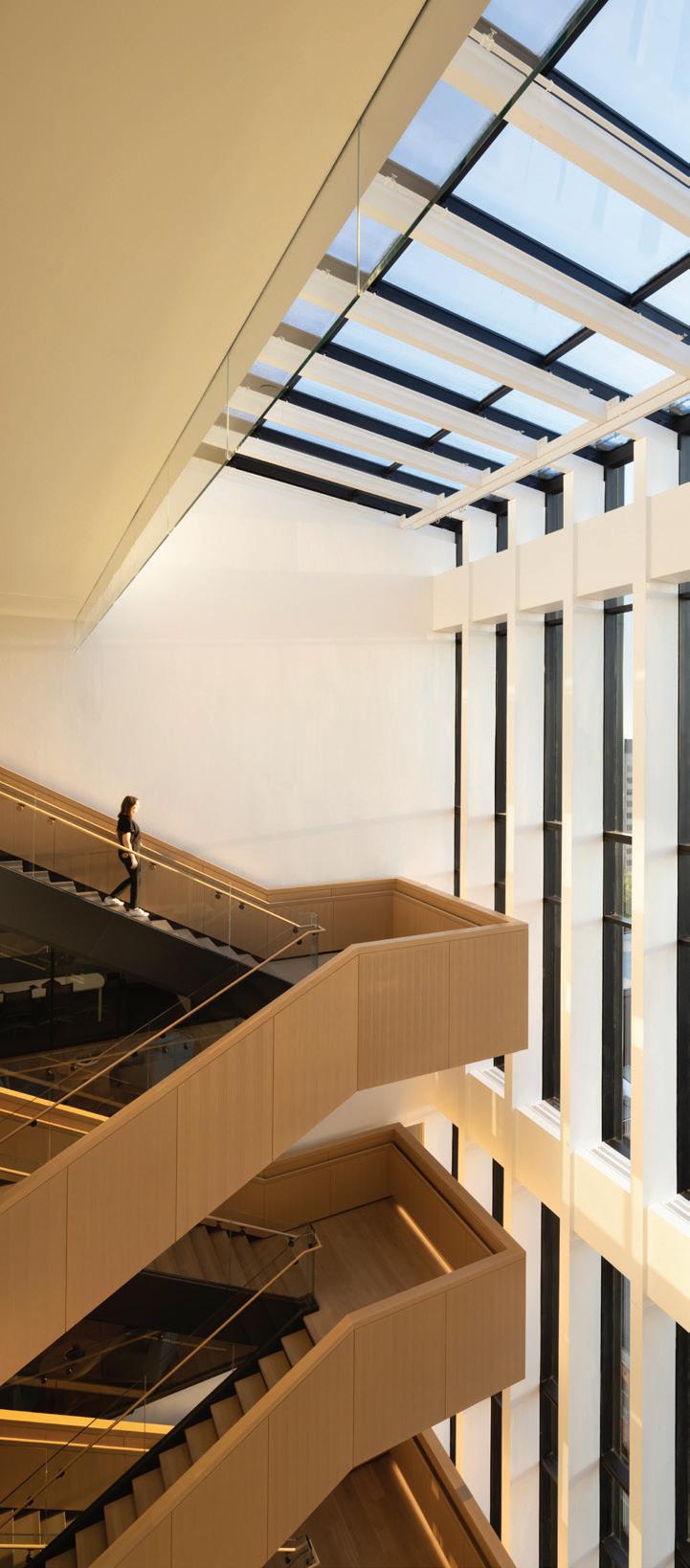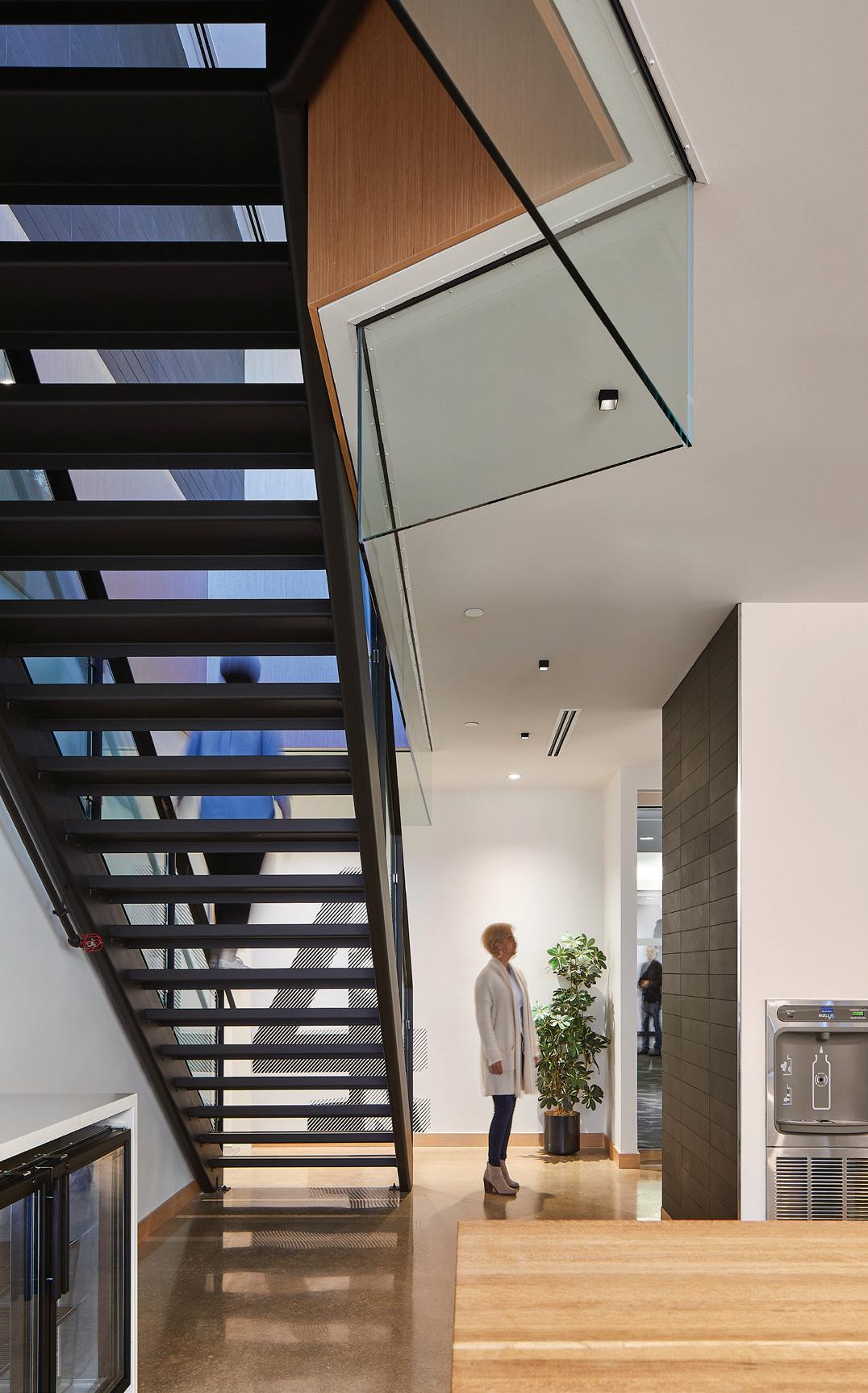 Furthering the vibrancy of the design, B+H also collaborated with local artists Samantha Dickie & Marie Khouri to create hanging sculptures suspended from skylights above the interconnecting stairs leading to the north and south office towers.