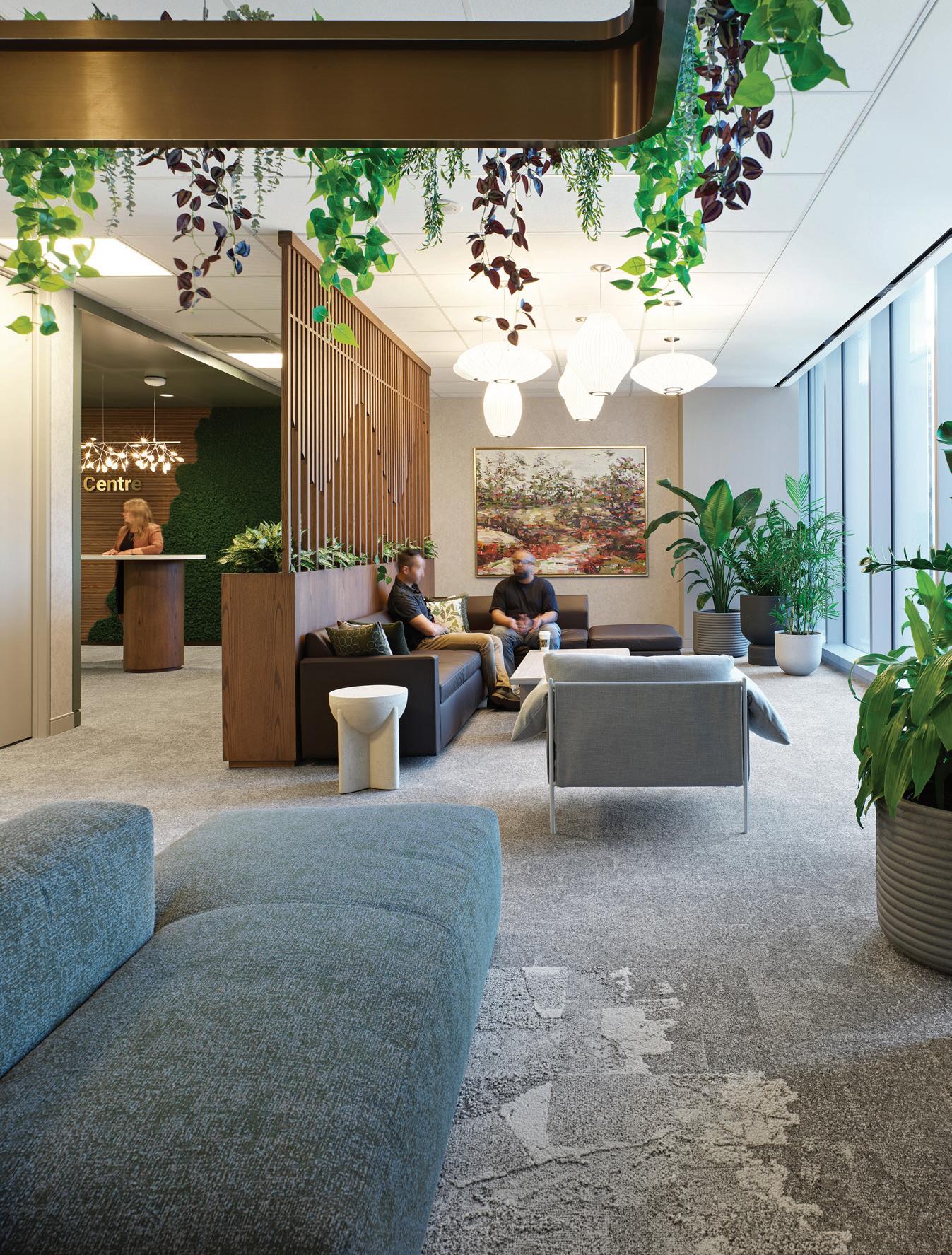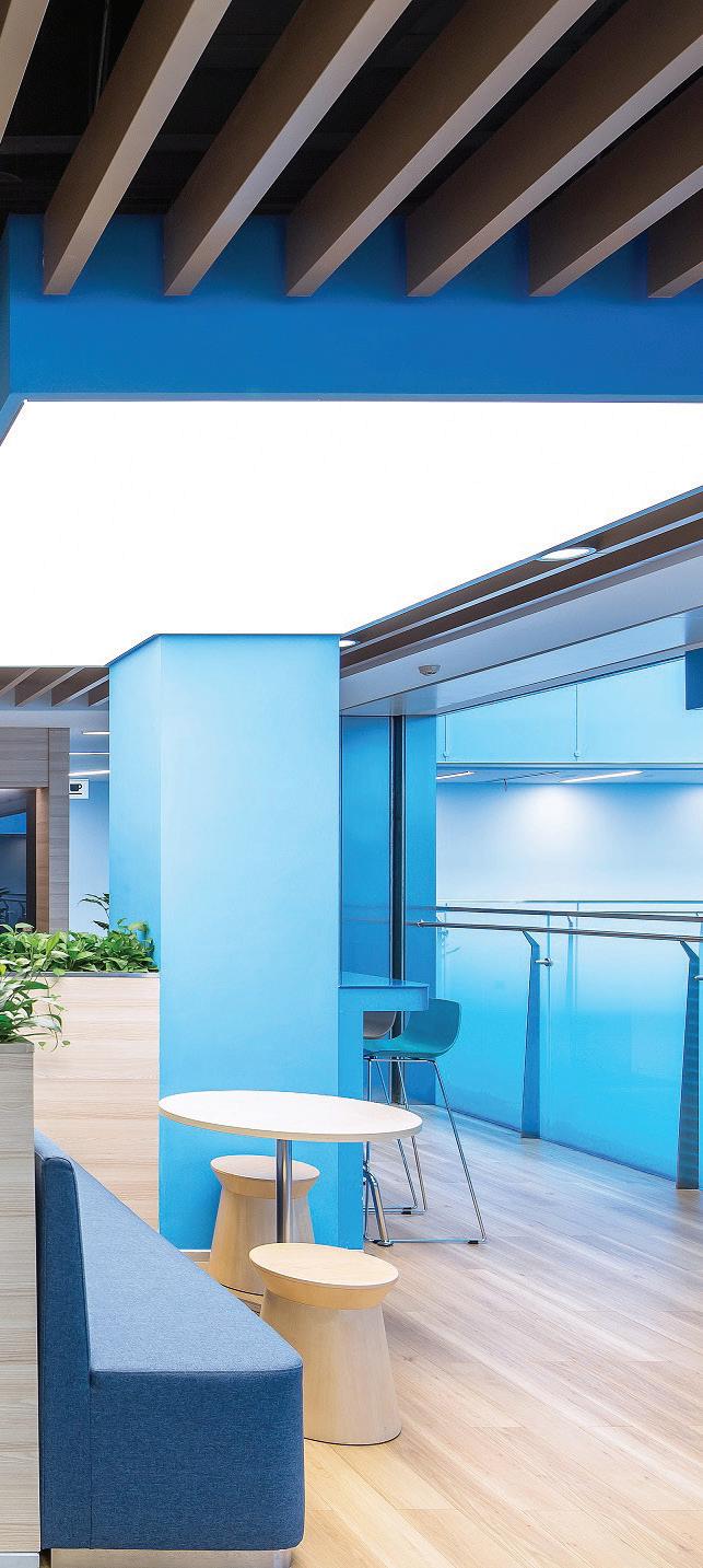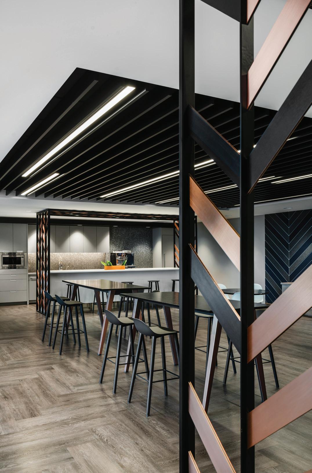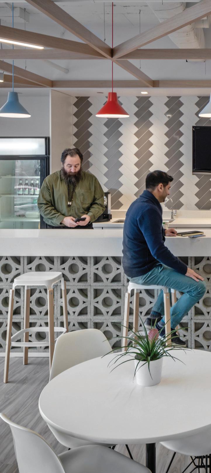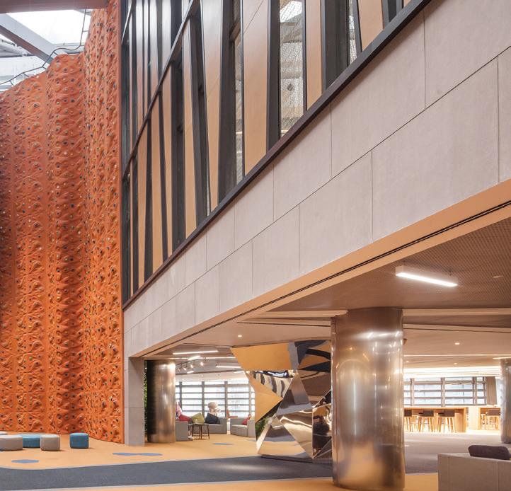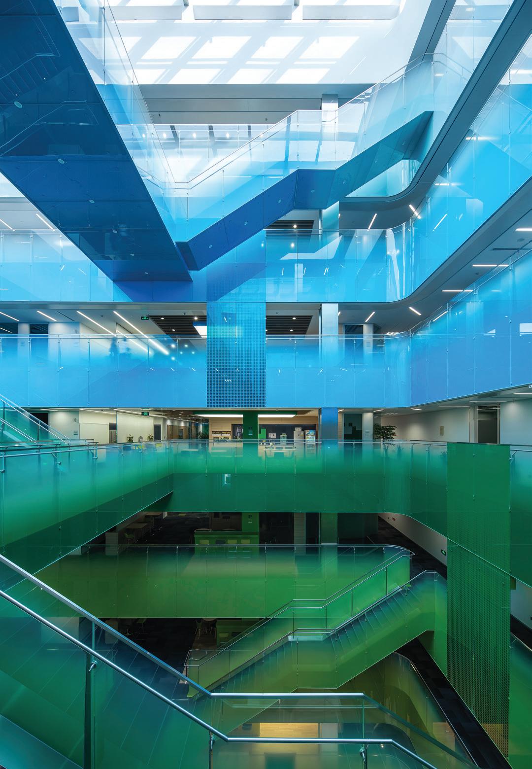 Furthering the vibrancy of the design, B+H also collaborated with local artists Samantha Dickie & Marie Khouri to create hanging sculptures suspended from skylights above the interconnecting stairs leading to the north and south office towers.