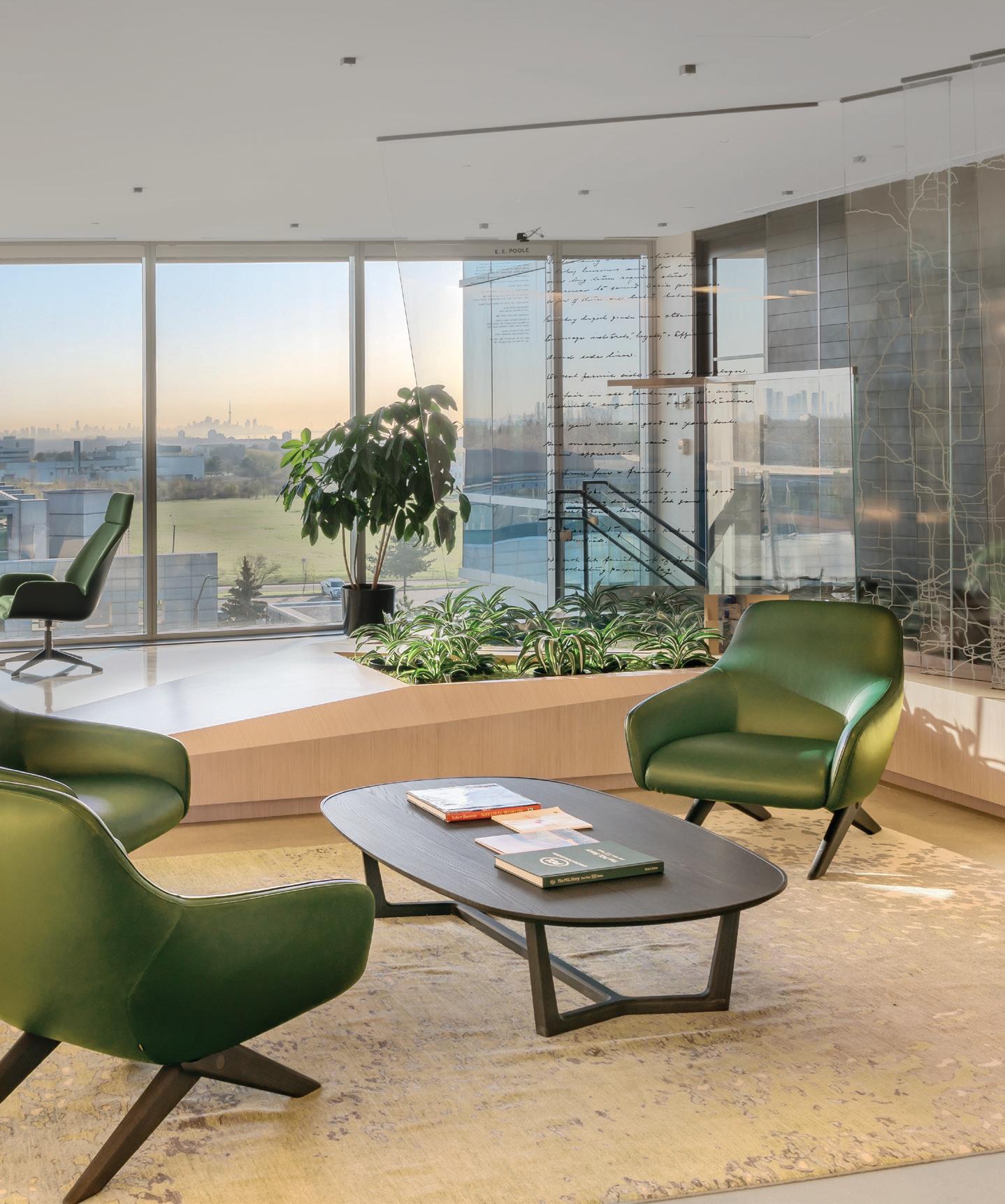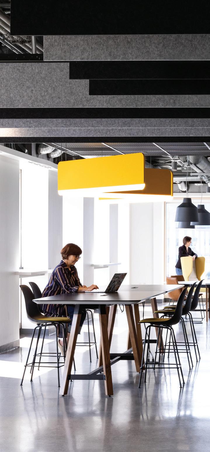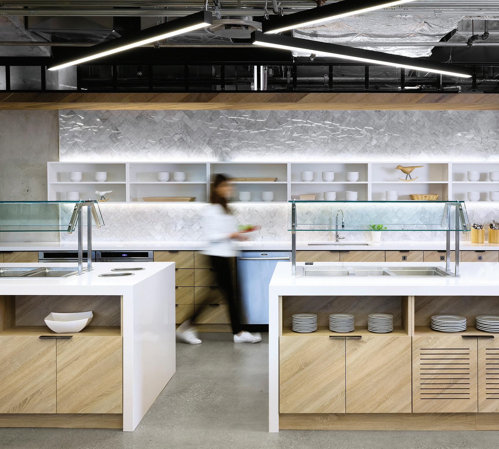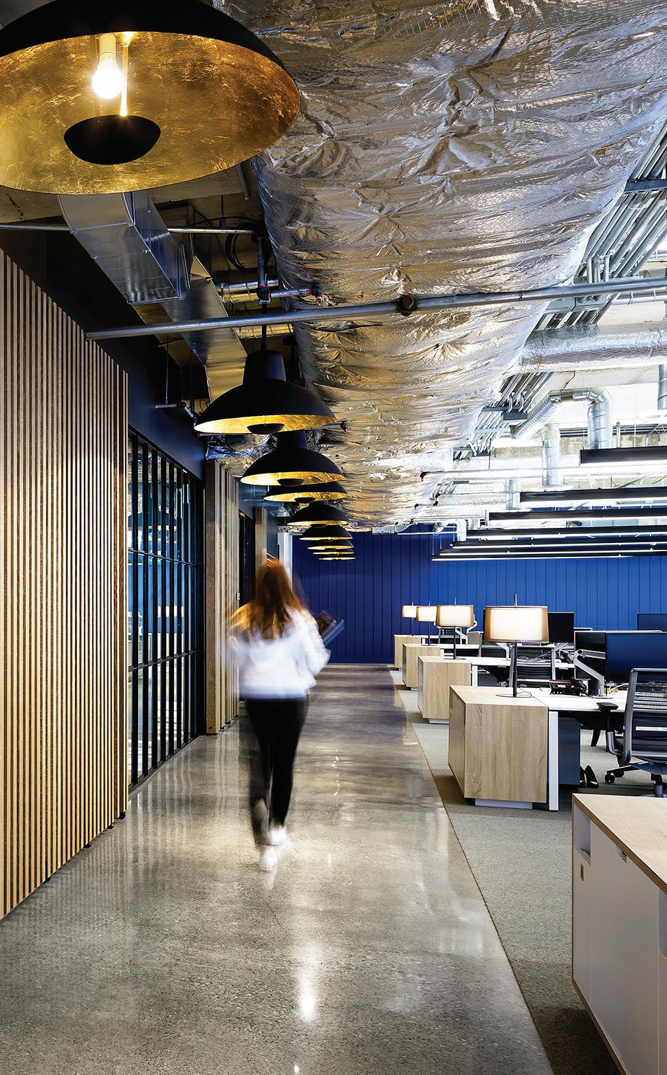 Furthering the vibrancy of the design, B+H also collaborated with local artists Samantha Dickie & Marie Khouri to create hanging sculptures suspended from skylights above the interconnecting stairs leading to the north and south office towers.
