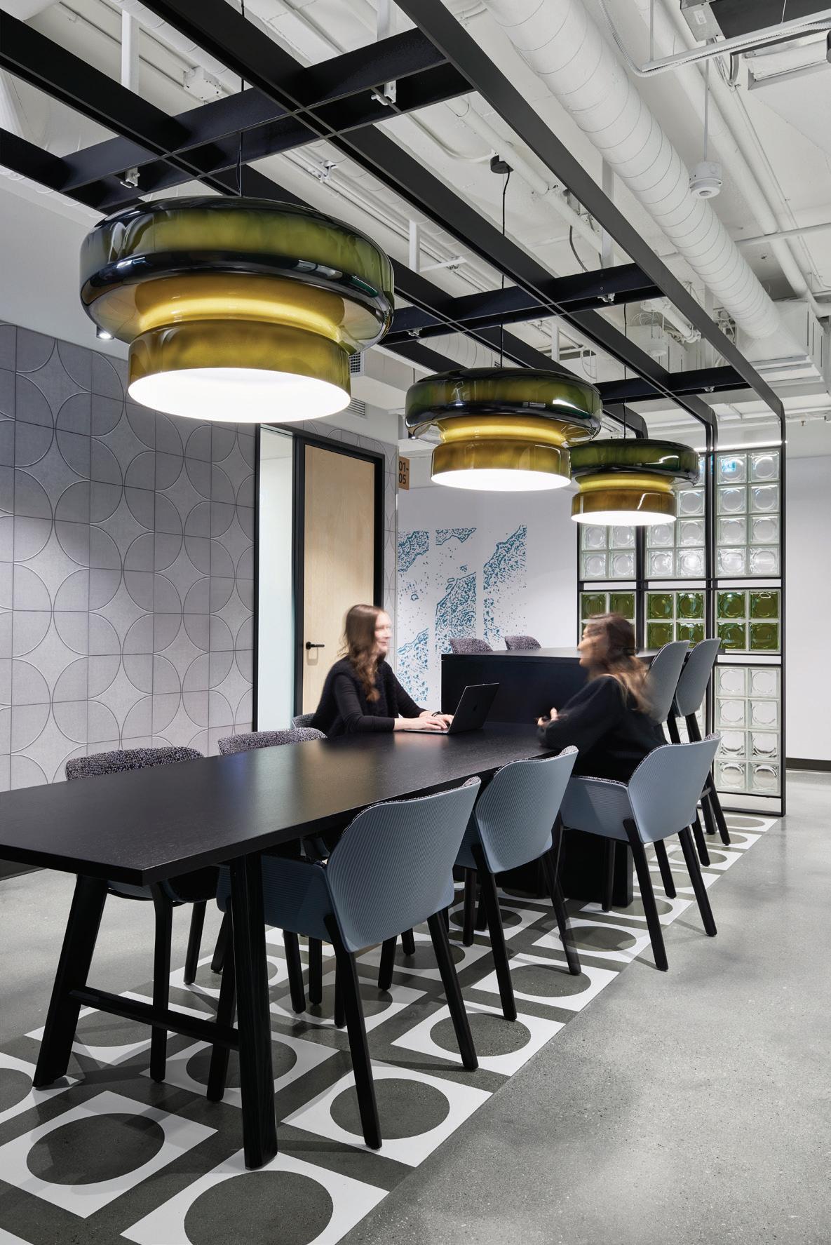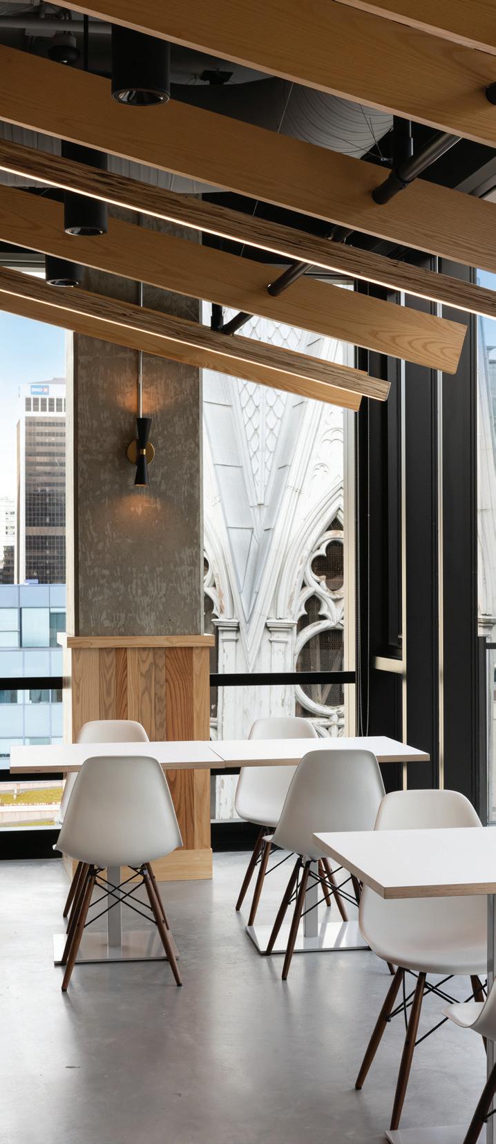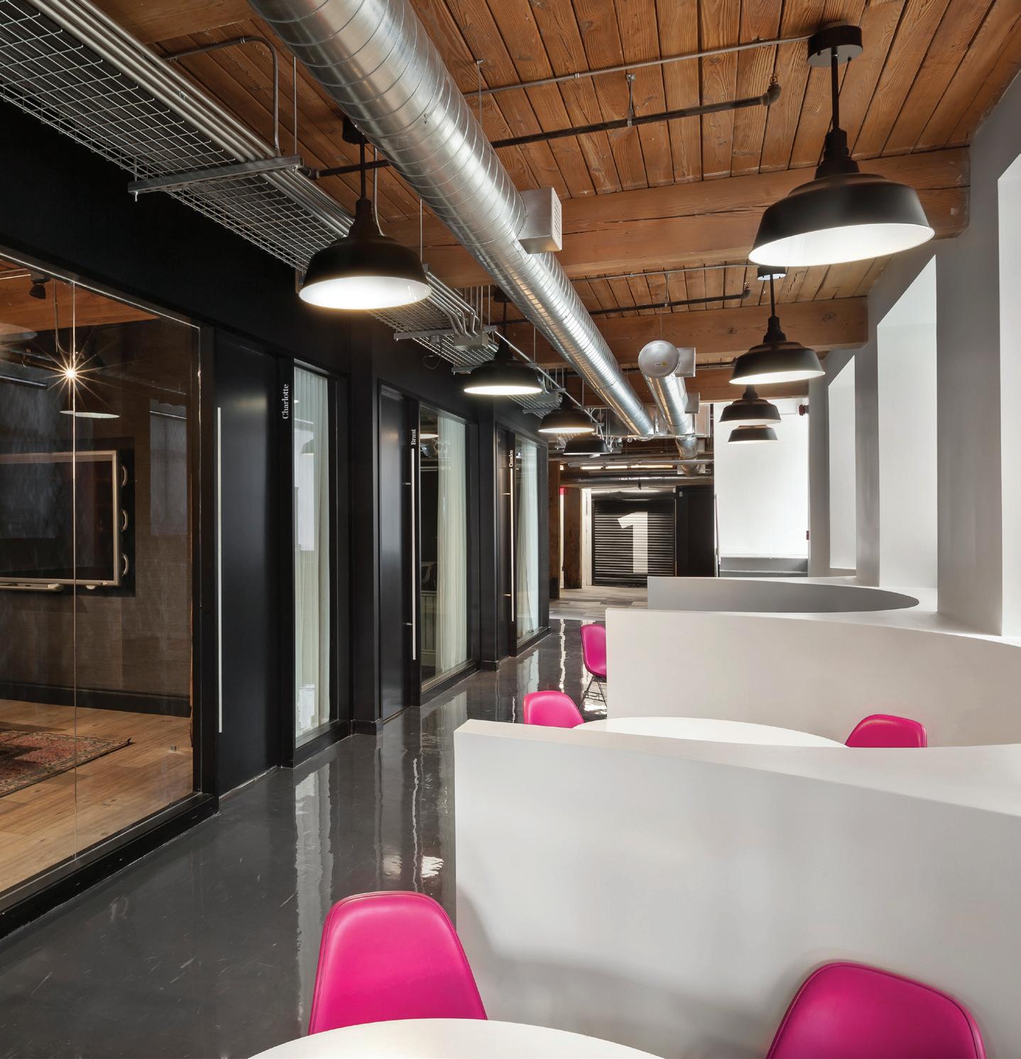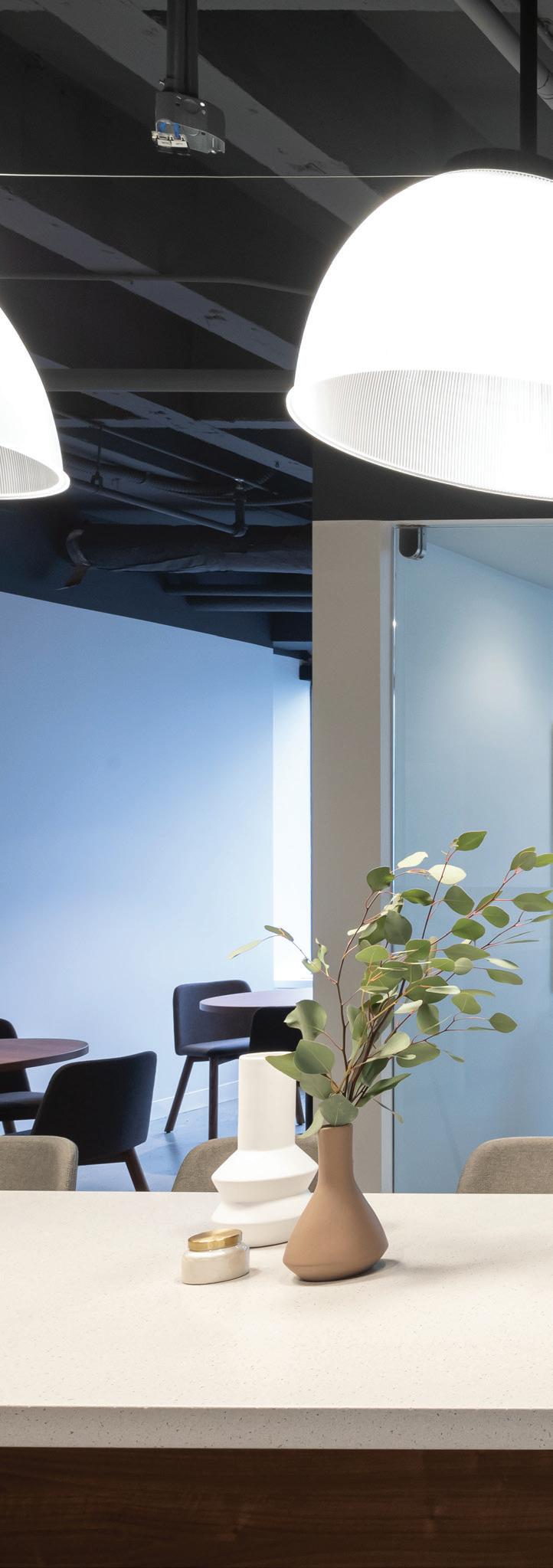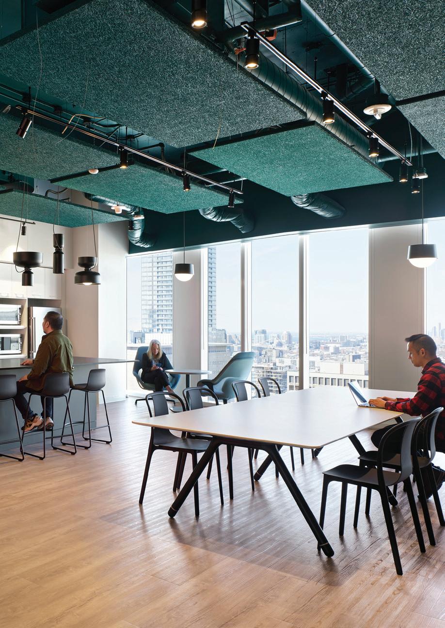 Furthering the vibrancy of the design, B+H also collaborated with local artists Samantha Dickie & Marie Khouri to create hanging sculptures suspended from skylights above the interconnecting stairs leading to the north and south office towers.