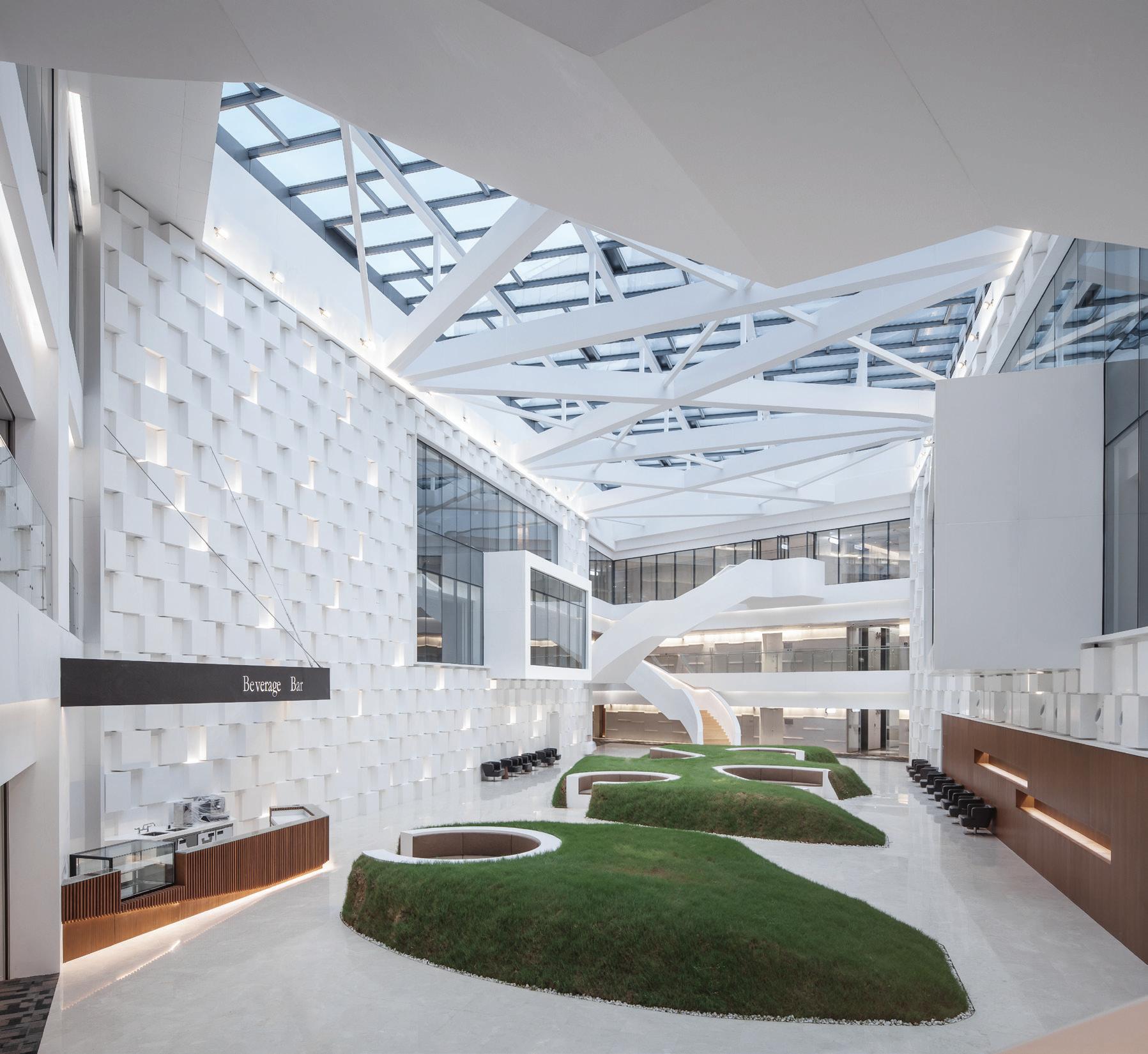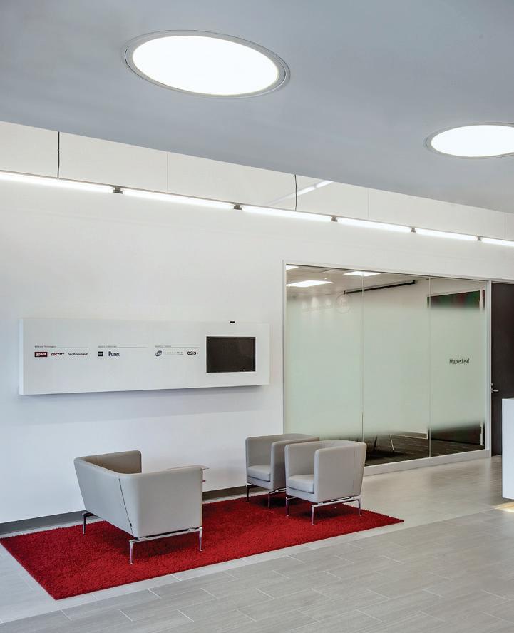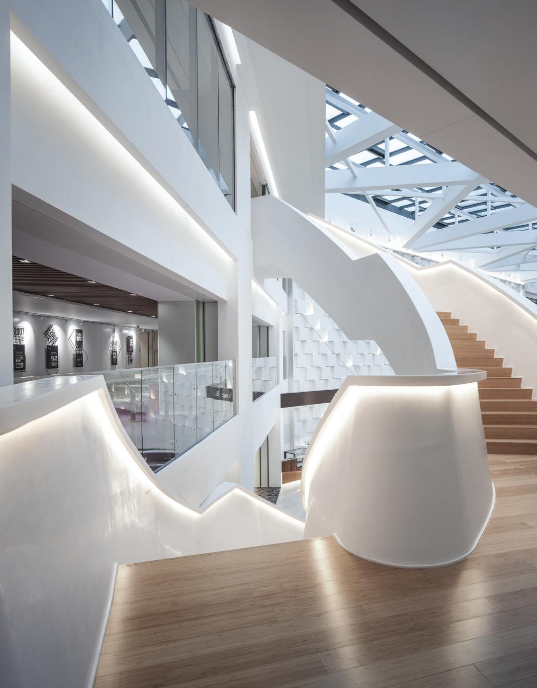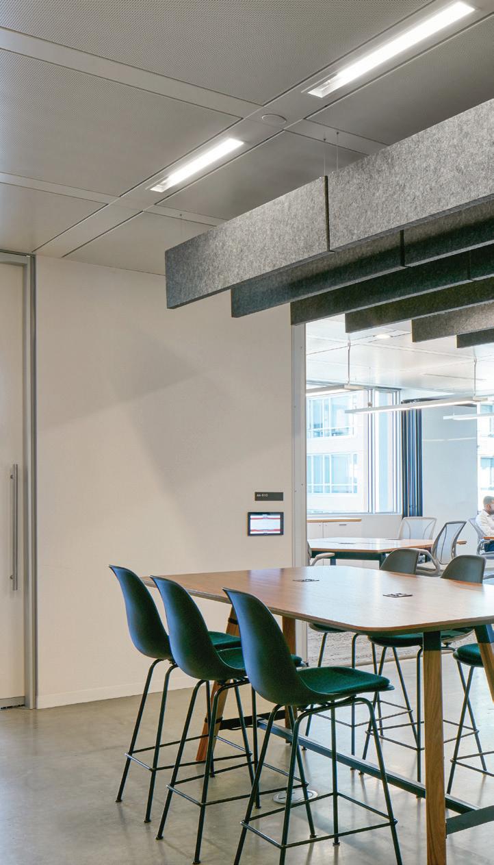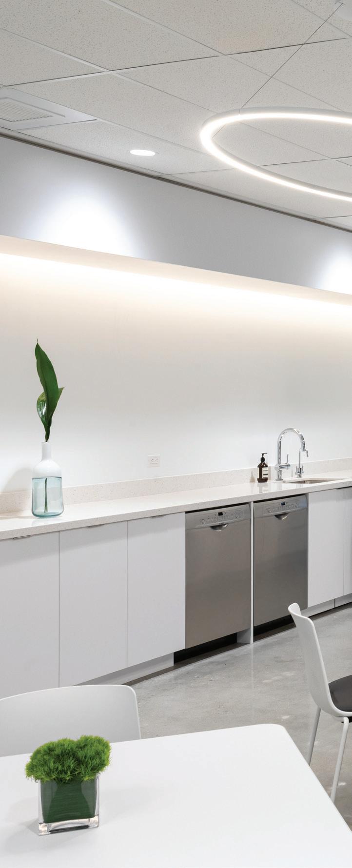 Furthering the vibrancy of the design, B+H also collaborated with local artists Samantha Dickie & Marie Khouri to create hanging sculptures suspended from skylights above the interconnecting stairs leading to the north and south office towers.