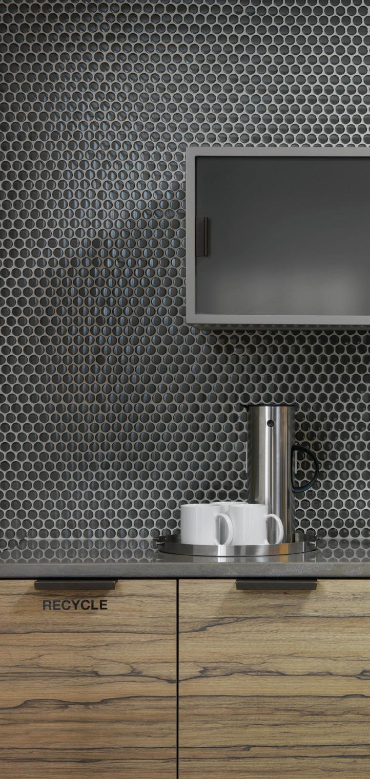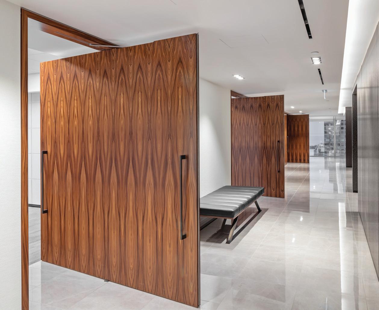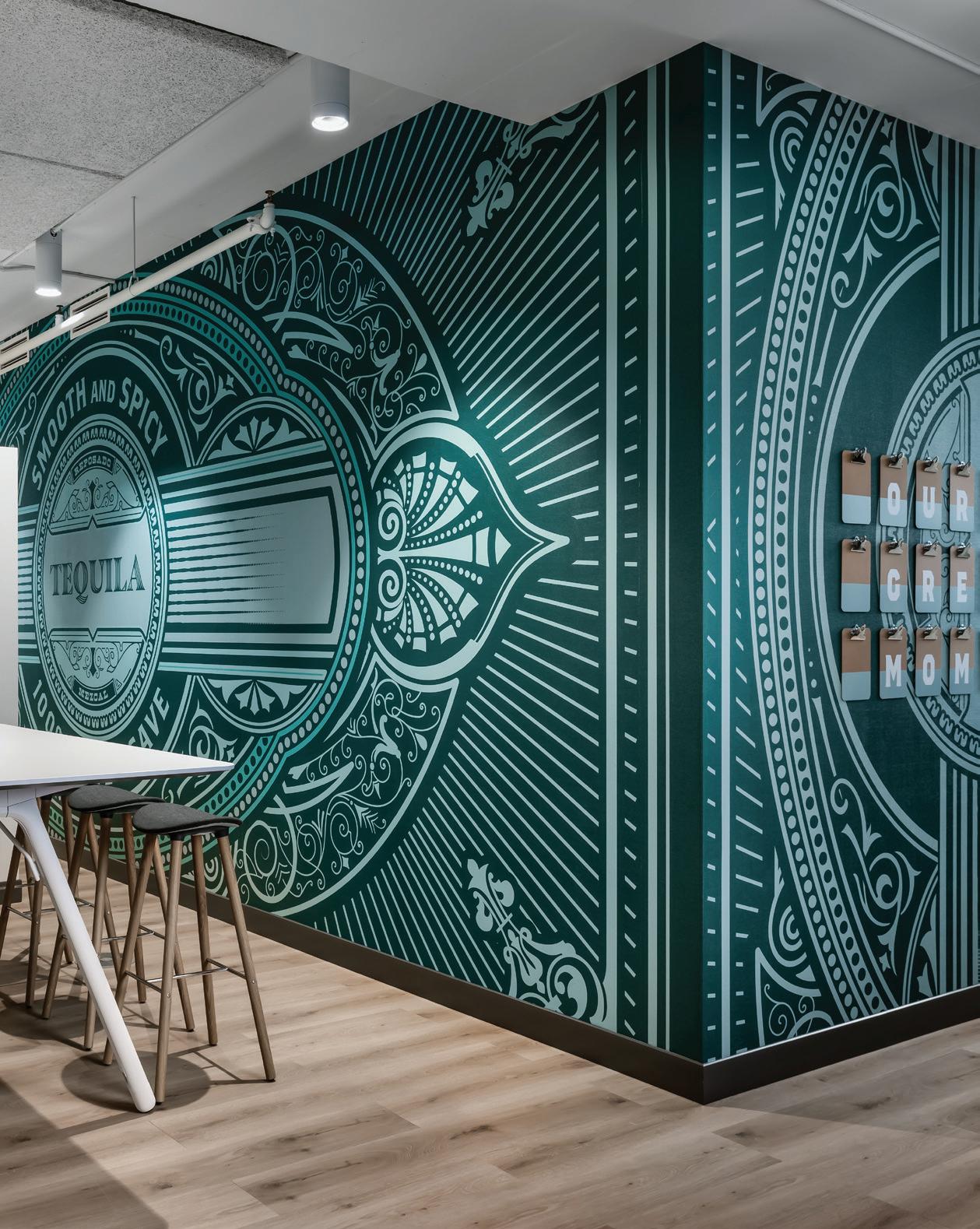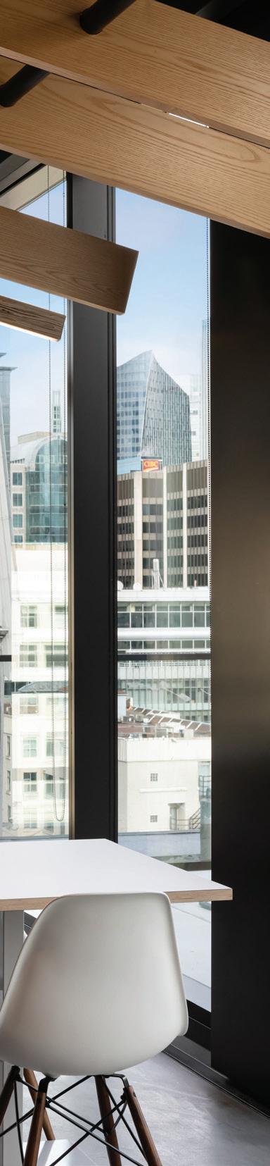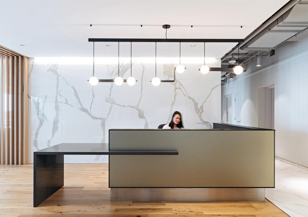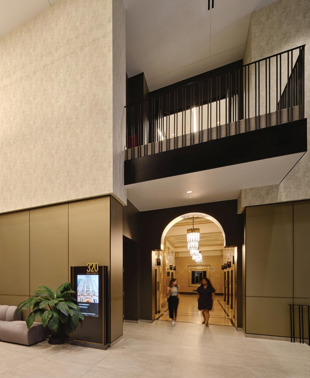 B+H led the interior design of the atrium and the office towers, which total 1.1 million sq.ft of office space. A striking 18-foot mural resembling a pixelated postage stamp crafted from reclaimed mailbox doors dating back to the building’s 1960s origins serves as a focal point. A hidden surprise awaits: one of the original post boxes holds a framed postage stamp from Vancouver to Seattle, commemorating the first mail run with 60 letters.