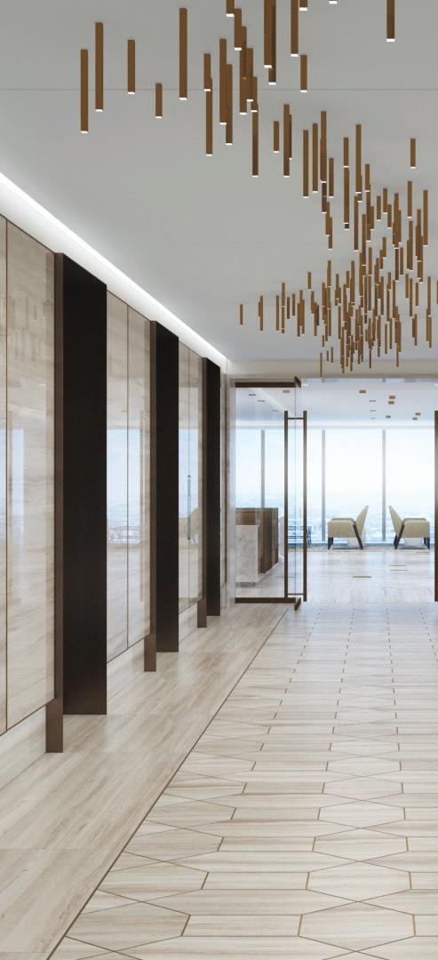 Designed to achieve LEED Gold certification, the South Tower of The Post incorporates architectural elements that promote natural light and biophilic design, contributing to health and wellness. Drawing inspiration from the intricate craftsmanship of materials like ceramic, stone, glass, and metal, areas of interest within the tower will be strategically placed to evoke curiosity, foster discovery, and provide moments of delight. The design encourages users to actively seek out these features, creating a dynamic and engaging experience that evolves from day to day.