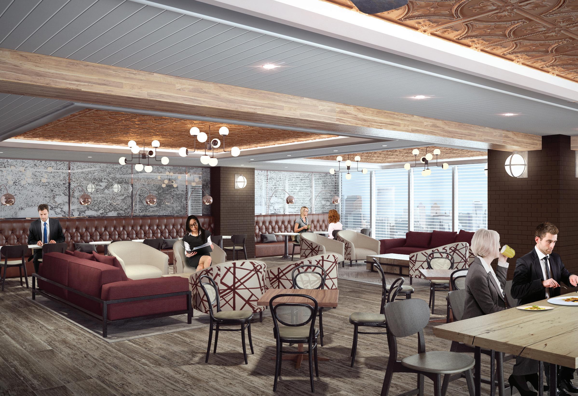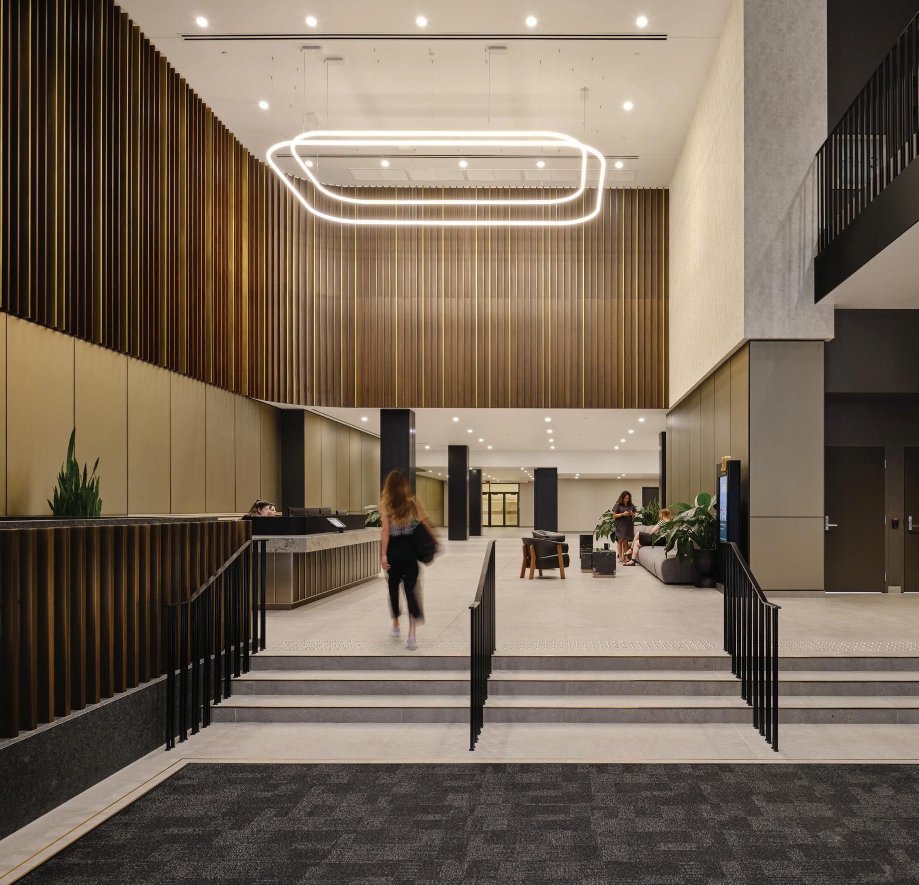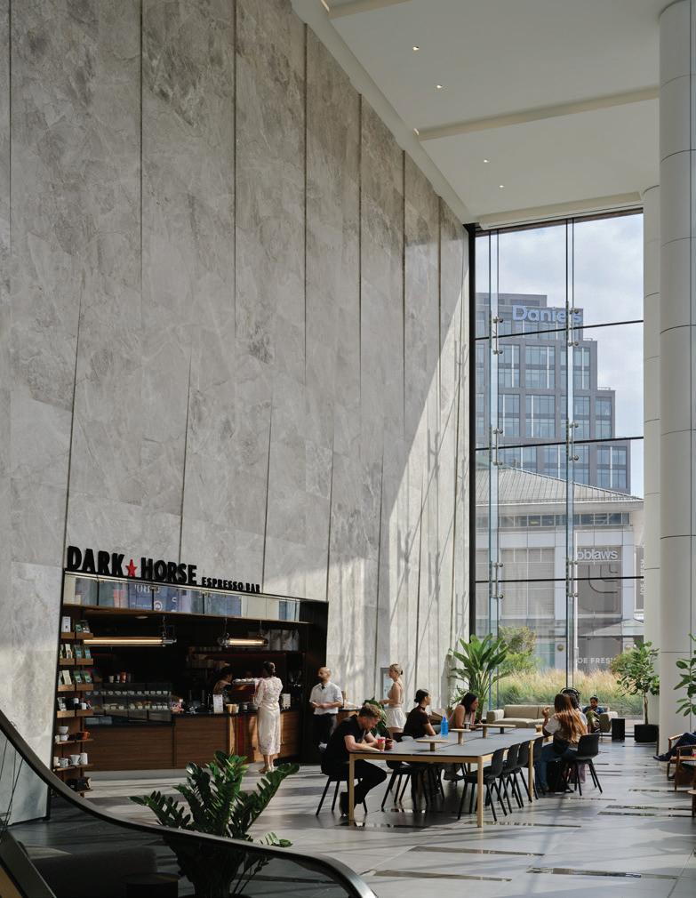 At the heart of this transformation lies the Atrium, a vibrant social and events hub connecting the North and South office towers. Spanning 22 feet in height, the Atrium is filled with natural light and features world-class amenities, including a 210-person event centre, a large café area equipped with dog parking and a dog run, and exterior basketball sports courts.